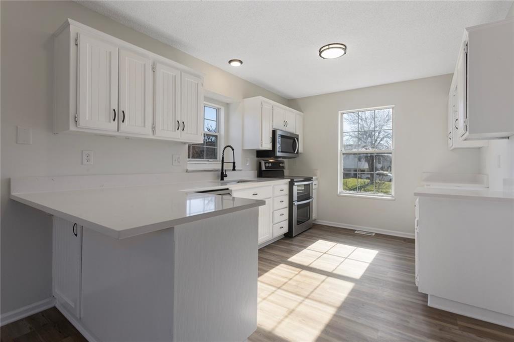 Move in ready in sought after Basehor Kansas! This updated 4 bed 2 bath has all the space you need! The home boasts big rooms with vaulted ceilings, updated kitchen with stainless steel appliances and quartz countertops, new flooring throughout the entire home, fresh interior/exterior paint, newer roof and HVAC, nice deck overlooking a good sized fenced in backyard, updated bathrooms, spacious 2 car garage, private 4th bedroom on lower level, located on a quiet street close restaurants, schools and shops, good highway access, won’t last long!