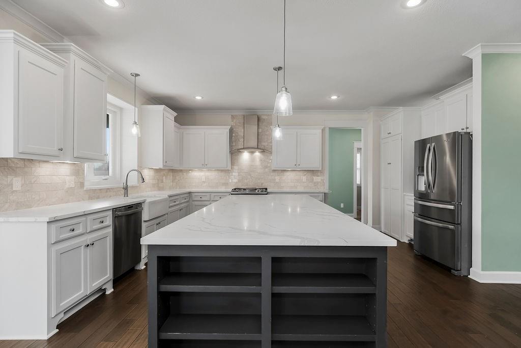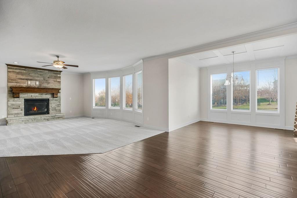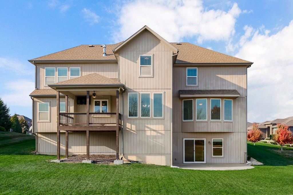 Beautiful 2-story home on Tee Box 12 of the Shawnee Country Club golf course! Built in 2017, this spacious home offers over 4,500 sq ft with 6 bedrooms, 5 full baths, and a finished walkout lower level. Features include high ceilings, an open floor plan, floor-to-ceiling stone fireplace, and a kitchen with brand-new quartz countertops, new gas range, new refrigerator, and walk-in pantry. Main-level bedroom and full bath are perfect for guests. The upper level includes a large primary suite with two walk-in closets, double vanity, and stand-alone soaking tub. Walkout basement includes a full wet bar with refrigerator and Sonic-style ice maker, huge rec room, 6th bedroom, and full bath. Enjoy a covered deck, lower patio, and golf course views. Located in the award-winning De Soto School District.