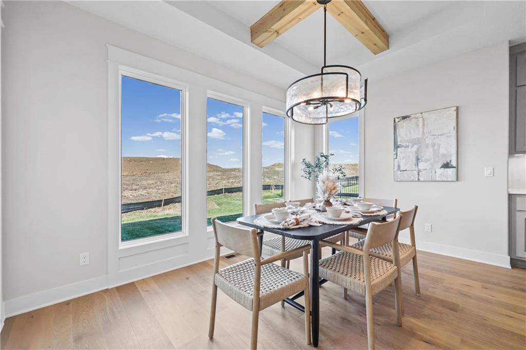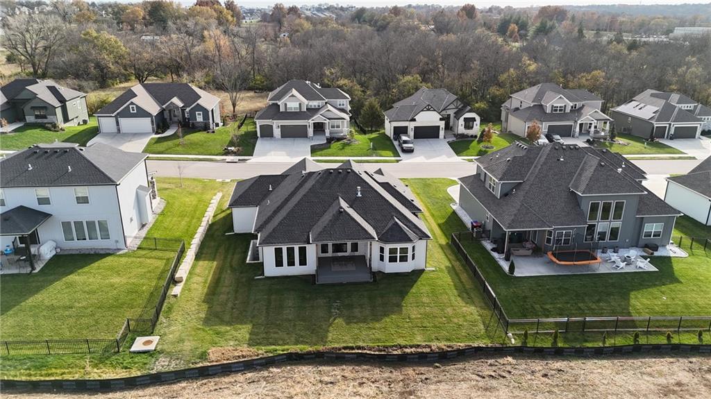Move-in ready, beautifully designed & built for long-term livability! This exceptional home offers high-end craftsmanship, thoughtful accessibility features & beautiful designer finishes throughout. Located in the highly rated Lee’s Summit School District, it's just a short walk to the neighborhood elementary & only minutes from LSW High School! A rare find in today’s market, this home offers true ZERO ENTRY access, providing step-free transitions inside for enhanced ADA accessibility, long-term comfort & effortless first floor living. An ENERGY STAR 3.1 rating delivers superior insulation, energy efficient windows & HVAC system=improved indoor comfort & lower utility bills! Outside: beautiful board & batten siding w/stone accents, cedar trusses & covered front entry. Inside: classic-modern design makes a striking first impression w/soaring ceilings, rich engineered wood floors & an open, airy layout. The foyer features a stunning wood-accent barrel ceiling & custom wall trim that sets an elevated tone. An impressive floor-to-ceiling stone fireplace graces the family room & a wall of windows drench the main level in natural light, contributing to the seamless flow into the kitchen & dining area. The designer kitchen is a true showstopper, featuring an oversized quartz island & premium custom cabinets that perfectly complement the wood accent range hood. A gas cooktop & stainless appliances=chef's delight, w/a walk-in pantry providing super storage space for grocery staples. The primary suite is a true retreat, featuring a spacious bedroom w/tray ceiling & large windows plus a spa-like bath w/dual vanities & an oversized walk-in tile shower. A large secondary bedroom, full bathroom, a pocket office & spacious laundry room round out the main floor. Downstairs, you'll find a large WOW FACTOR Rec Room w/floor to ceiling fireplace, a gaming area, wet bar, 2 additional spacious bedrooms serviced by a 3rd full bathroom & a 1/2 bath (with urinal!) - perfect for poker night!