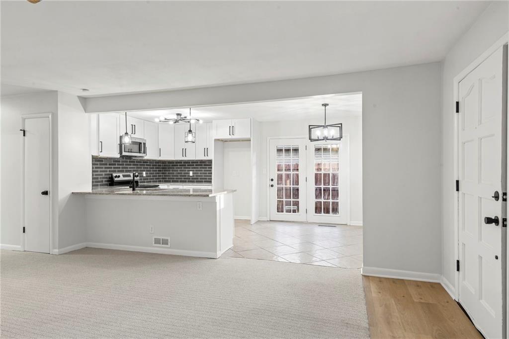 Welcome to your fully updated modern ranch—bright, open, and completely move-in ready. This beautifully refreshed home features 4 bedrooms (the master is an ensuite), 3 full bathrooms, and a fully finished lower level. Step inside to an airy main floor with new interior paint, large picture windows, and a stunning floor-to-ceiling brick fireplace with a sleek natural-wood mantel. The open kitchen shines with brand new cabinets, granite counters, stainless steel appliances, modern lighting, and a sleek subway-tile backsplash. The dining area opens to the backyard through double glass doors—perfect for indoor/outdoor living. Downstairs, the fully finished lower level offers a huge second living space with a second fireplace, new flooring, a convenient wet bar/kitchenette, a large bedroom, and an updated full bath—ideal for guests, an office, or a private suite. Outside has a fully fenced in backyard perfect for pets. Don't miss out!
