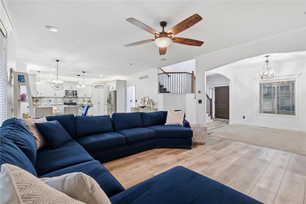 Prepare to all in love with this stunning 5 bedroom, 3.5 bath, two story home in Eagles Ridge! This home has everything you have been looking for and more! The main level offers an oversized living room with fireplace and an adjoining formal dining room or flex space great for a home office or playroom. The living room opens nicely to a beautiful kitchen and eat in dining area great for entertaining. The kitchen features a large kitchen island, granite countertops, expansive walk-in pantry, under cabinet accent lighting, stainless steel appliances and upgraded USB outlets. Upstairs you will find the perfect primary suite with a vaulted ceiling, ensuite with double vanity, jetted tub and massive walk-in closet! There are three additional bedrooms all with walk-in closets and the convenience of second floor laundry room! The showstopper? An incredible finished basement that truly has it all! Enjoy luxury vinyl plank flooring, a cozy family room with electric fireplace, beautiful kitchenette with quartz countertops and a full size fridge, a bonus eat in area AND play space! Don’t forget about the fifth bedroom and full bathroom! You will also enjoy a three car garage with epoxied floors, a fully fenced backyard with play set and concrete patio. The exterior has also been recently painted. Don’t miss your chance at this spectacular home!