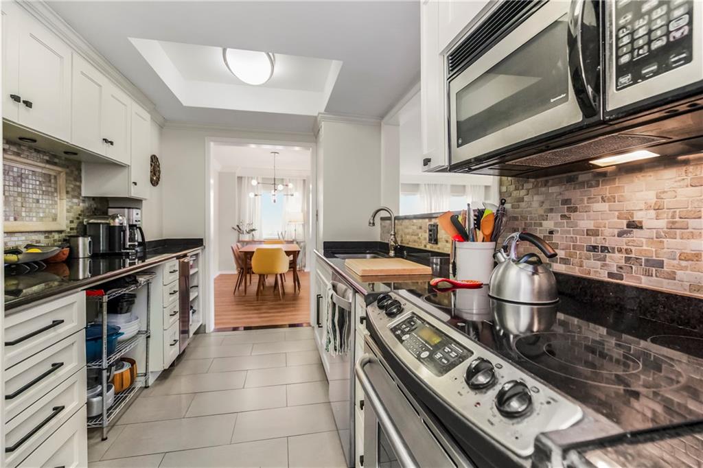 Enjoy Plaza living at it's finest! This 2nd floor unit has beautiful upgrades. Nothing to do but move in start enjoying a lock and leave life style. The kitchen features stainless steel appliances, granite counters and newly painted cabinets. Brand new luxury vinyl flooring installed in the living, dining and bedroom. Lovely bath with marble shower and plenty of storage. Enjoy morning coffee or shady afternoons on the large east facing balcony. FREE laundry room located steps from the condo for your convenience, washer/dryer hook ups in the unit as well. Secured garage parking with access down the hall from the condo. Work out room located just off of the lobby on the first floor. Storage locker in the basement.Just walk out the front door to find a vast selection of shopping and dining opportunities to enjoy.
