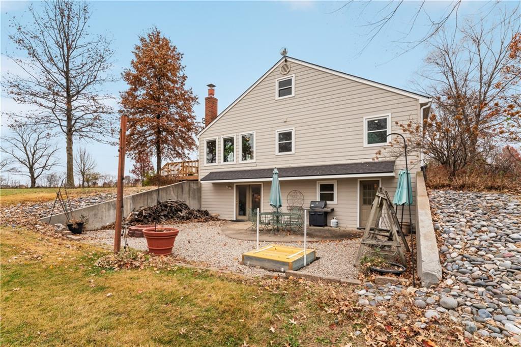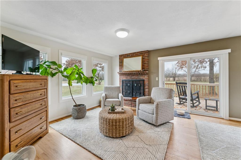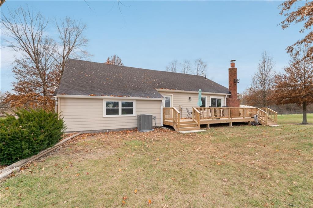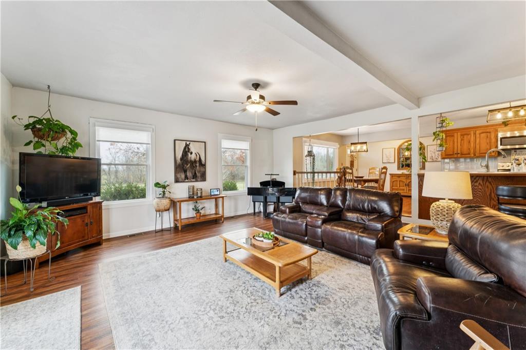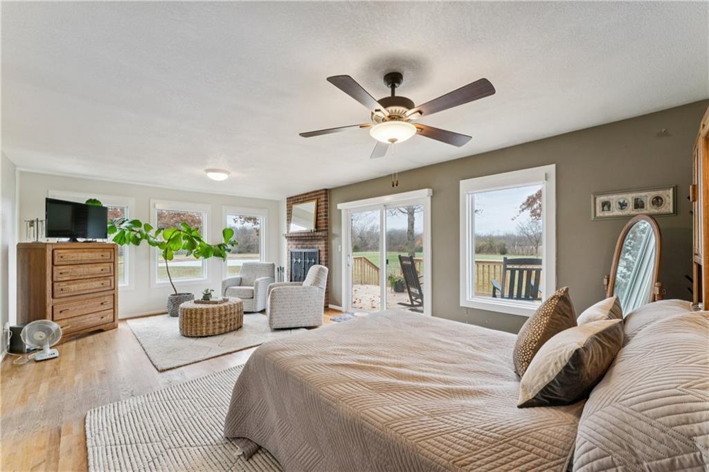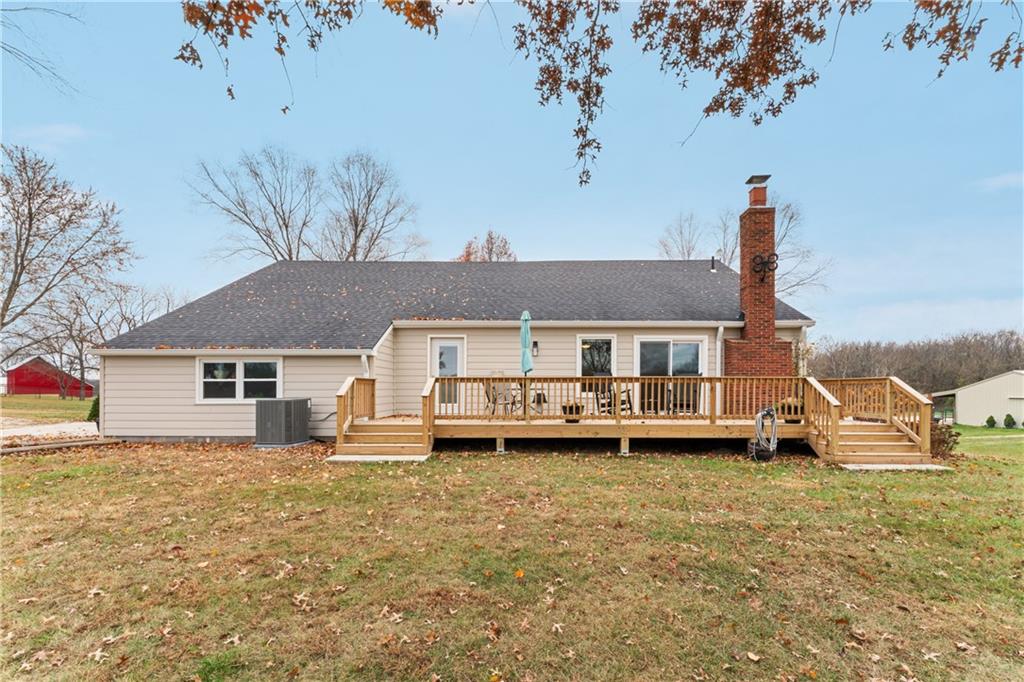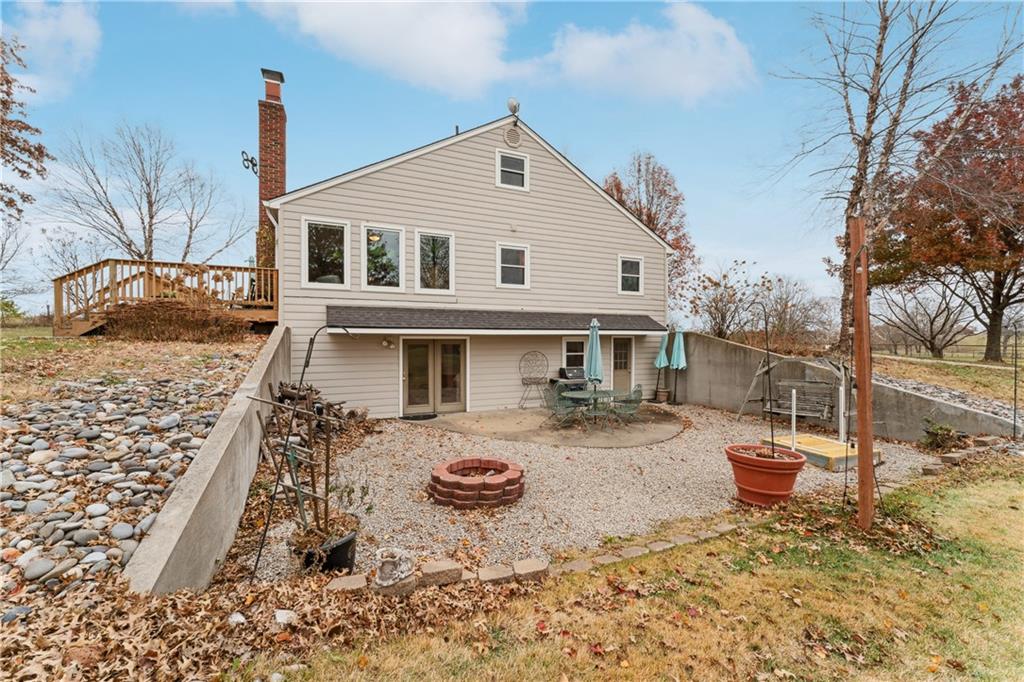 Just minutes from Overland Park and Louisburg, this 20-acre retreat offers unmatched privacy, incredible views, and a perfect blend of woods, pasture, and water. With ten acres of mature timber, ten acres of open pasture, a stocked, manicured pond, and Poney Creek running the full length of the property, it is the ideal blend of beauty and function. Horse ready and fully set up, the property includes horse safe fencing, cross fencing, a heated automatic waterer, three stalls with an attached run-in shed, a tack and storage room, plus water and electric in the barn. The home offers more than 3,100 square feet of comfortable, thoughtfully designed living space. Large windows and a brand-new deck capture sweeping views and daily wildlife. Inside, the great room is perfect for gatherings, and the kitchen is built for entertaining. Key updates give serious peace of mind. The home features 20 new thermal windows, a new sliding door, new gutters with guards, new composite siding with a 50-year transferable warranty, a one-year-old HVAC system, a one-year-old water heater, and a 5-year-old, 30-year roof. Follow the long private driveway to a property that feels secluded, peaceful, and truly special. This is a rare opportunity to live the outdoor lifestyle you want while staying close to the conveniences you need.
