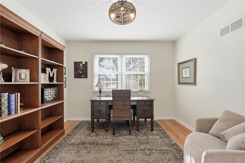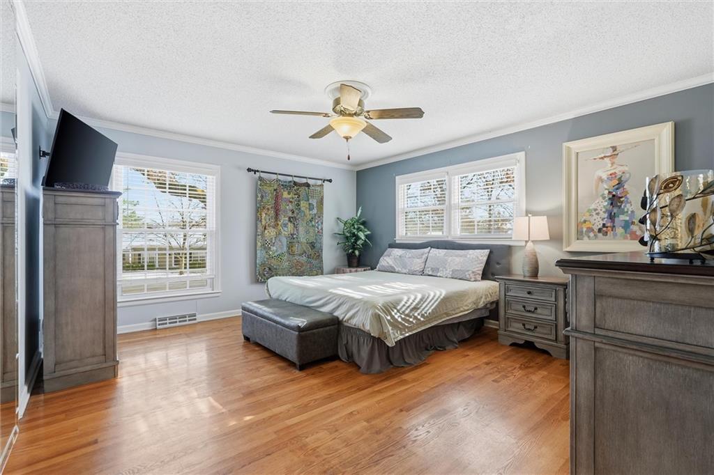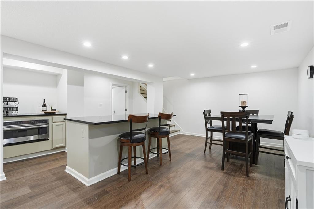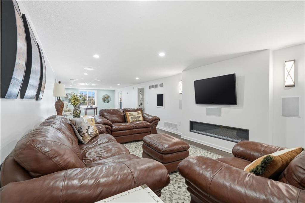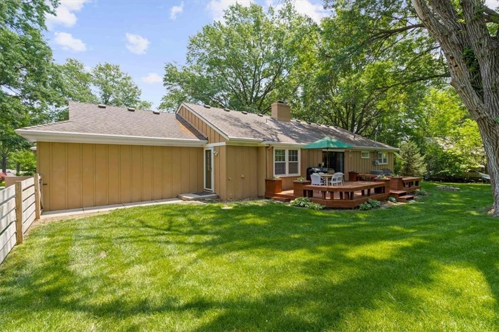 Welcome to this beautifully maintained one-level living, nestled in the heart of highly desirable Leawood Estates. This spacious property blends timeless charm with comfort and functionality. Step inside to find multiple living and entertaining spaces, new interior paint, gleaming hardwood floors, sun-filled rooms, and a layout that flows effortlessly from one space to the next. The updated kitchen has new quartz countertops and backsplash, new SS appliances, creating a bright area. The master suite delivers a peaceful retreat, complete with ample closet space and an en-suite bath with soaker tub and marble floors. The finished basement boasts a large rec room, theater area with built-in surround sound, electric fireplace, full bath and 2 bedrooms perfect for a home gym, office or guests. The wet bar is an entertainer’s dream with a quartz countertop island, wine cooler, beverage fridge, and convection oven/microwave. Outside, you’ll love the large backyard—perfect for play, relaxation, or future outdoor enhancements. New fencing! This home places you just minutes from award winning schools, shops, parks, and all the conveniences of the city. A rare opportunity to plant roots in an iconic community—don’t miss your chance to make this one yours!