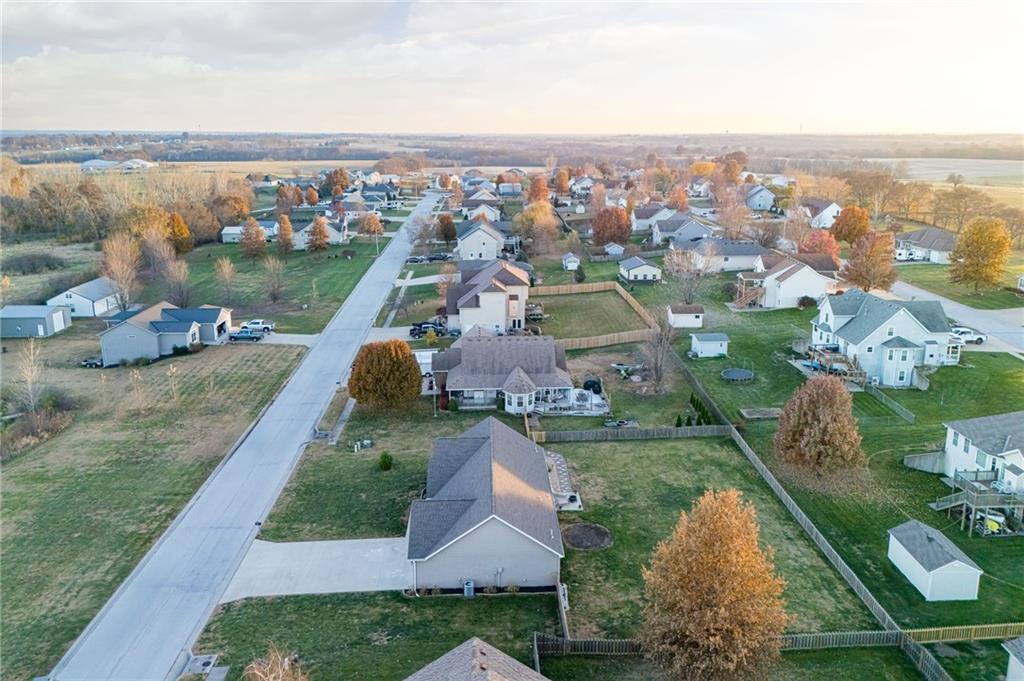 This beautiful three bedroom two bath ranch is located in the inviting Clinton Estates subdivision. The home boasts a lovely sitting area on the covered front porch, looking out into the quiet neighborhood. Inside, the home is immaculate, with the granite countertops, gorgeous cabinets, and stainless appliances in the kitchen. The dining and living area flow together for an open feel. The three bedrooms have plenty of natural light, and the primary bedroom with full en suite includes a convenient walk in closet. A spacious fenced backyard has a great patio for entertaining guests, or other outdoor activities. Located just ten minutes from Smithville, with convenient access to the lake for all your recreation desires. Less than 30 minutes from the Kansas City airport for ease of traveling or commuting. Schedule your showing today!