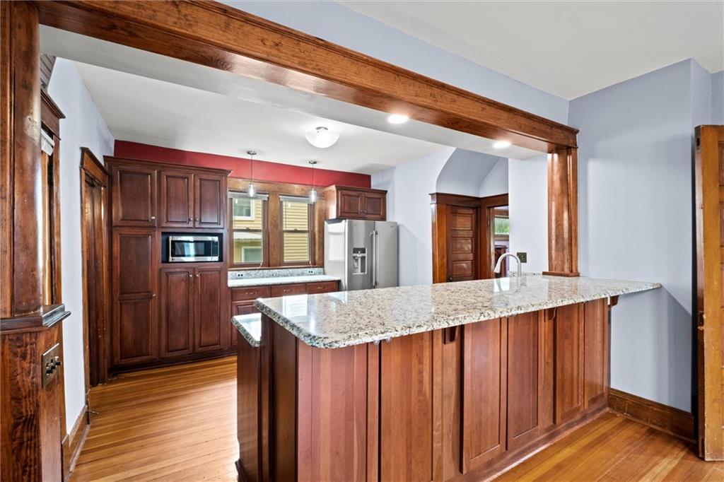 Imagine coming home to a place that feels warm, soulful, and full of stories. This 1910 Four-Square Victorian has the kind of charm you just don’t find in new construction—and it welcomes you in from the moment you step onto the front porch. Sunlight pours through four beautiful stained-glass windows, casting soft color across the hardwood floors and highlighting the original woodwork that’s been lovingly preserved over the years. The living space feels cozy and grounded, anchored by a wood-burning stove that makes winter evenings especially inviting. The kitchen has been thoughtfully remodeled to bring the home into modern life without losing its character. It’s open and easy to gather in, with granite countertops, stainless steel appliances, and plenty of room to cook, connect, and linger. A marble-accented half bath adds a quiet touch of elegance. Upstairs, the expansive third-floor room is a wonderful bonus—perfect for a dreamy bedroom, creative studio, home office, or playroom. Outside, the home truly shines. Sip your morning coffee on the screened-in back porch, or wind down at the end of the day on the classic covered front porch, watching the neighborhood go by. This is more than a house—it’s a place where history, comfort, and everyday moments come together beautifully.