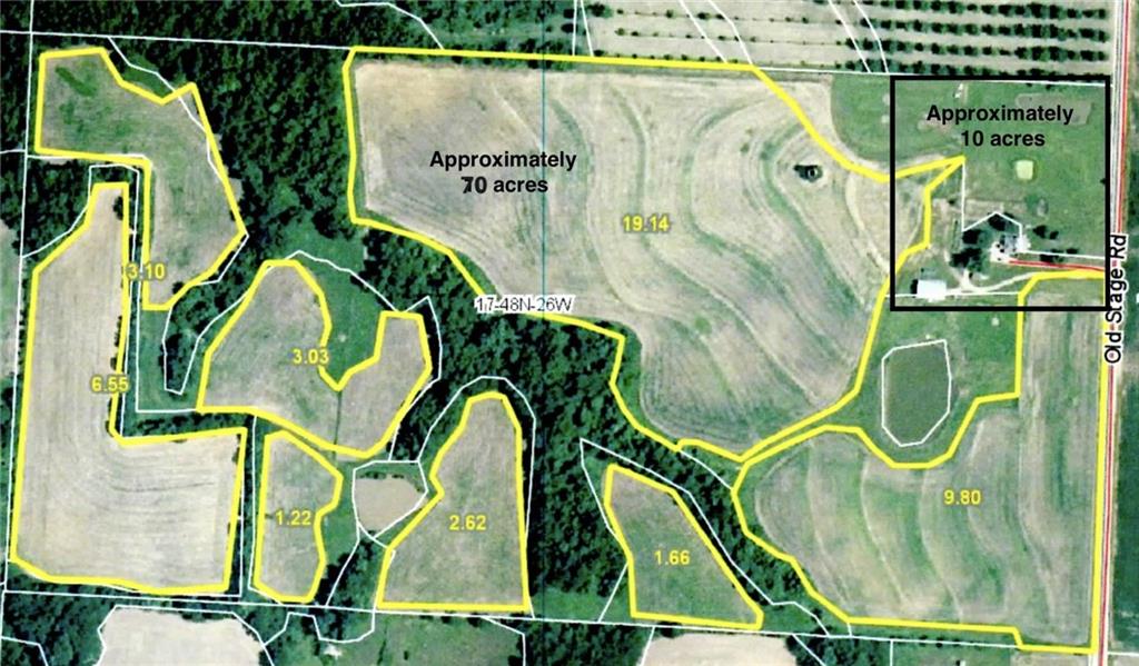 Discover the perfect combination of open space, water features, and agricultural opportunity on this 70-acre (+/–) tract in Lafayette County. Whether you’re looking for productive crop ground, quality pasture, or a private retreat, this property offers exceptional versatility. The land features two ponds, a seasonal creek, and a mix of perimeter and interior fencing, making it suitable for livestock or hay production. Electricity and water are available at the road, and the property offers easy access to Highway 13 and I-70 for convenient travel in any direction. A survey is currently in progress to verify exact acreage. Please note that the home and barn located on approximately 10 acres are not included in the sale. However, they may appear in photos for reference, and approximately 48 of the acres are tillable. Buyers should note that a driveway, electric service hookup, and water connection would need to be added to access and improve the property. Natural gas is not available in this area. With its open space, water features, and prime location, this acreage is an excellent opportunity for farming, grazing, recreation, or future building plans. Wildlife has been seen on the property as well. Schedule your tour today!