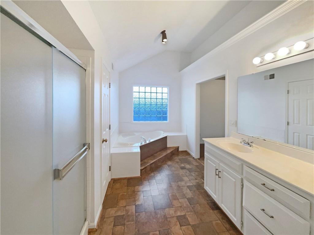 Welcome to your dream home! This property boasts a spacious deck perfect for outdoor entertaining. Inside, you'll find a cozy fireplace and a fresh, neutral color paint scheme that will complement any decor. The fenced-in backyard offers privacy and space for outdoor activities. The primary bathroom is a haven with a separate tub and shower, and double sinks for convenience. The kitchen is a chef's dream with all stainless steel appliances, an accent backsplash. Don't miss out on this gem!. Included 100-Day Home Warranty with buyer activation