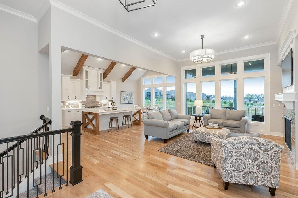 The Timberland Reverse by New Mark Homes. You notice the stunning finishes when you enter through the front door. The Great Room features a wall of windows, gorgeous fireplace with feature trim wall above the fireplace mantle. Spacious kitchen with large island & pantry. The Master Suite has soaker tub & a fabulous tiled walk-in Shower. A large drop zone off the garage will keep you organized. The 2nd Main Floor bedroom would also make a wonderful home office as it is private off the back of the home. Entertain in the lower level daylight basement Recreation Room with a bar. **HOME IS UNDER CONSTRUCTION** Taxes are an estimate. Photos of completed home are of a similar home. Lakeview Ridge is a new build community just west of Lake Olathe with great homes started and fantastic lots available. POOL coming in 2026/2027. You can get to the neighborhood off of Dennis & Houston with easy access from K7 or coming from Lakeshore. Our Sales Office is located 14271 Houston. Our development is right next to Lake Olathe and neighborhood feeds into Clearwater Creek Elementary, Oregon Trail Middle School and Olathe West High School.