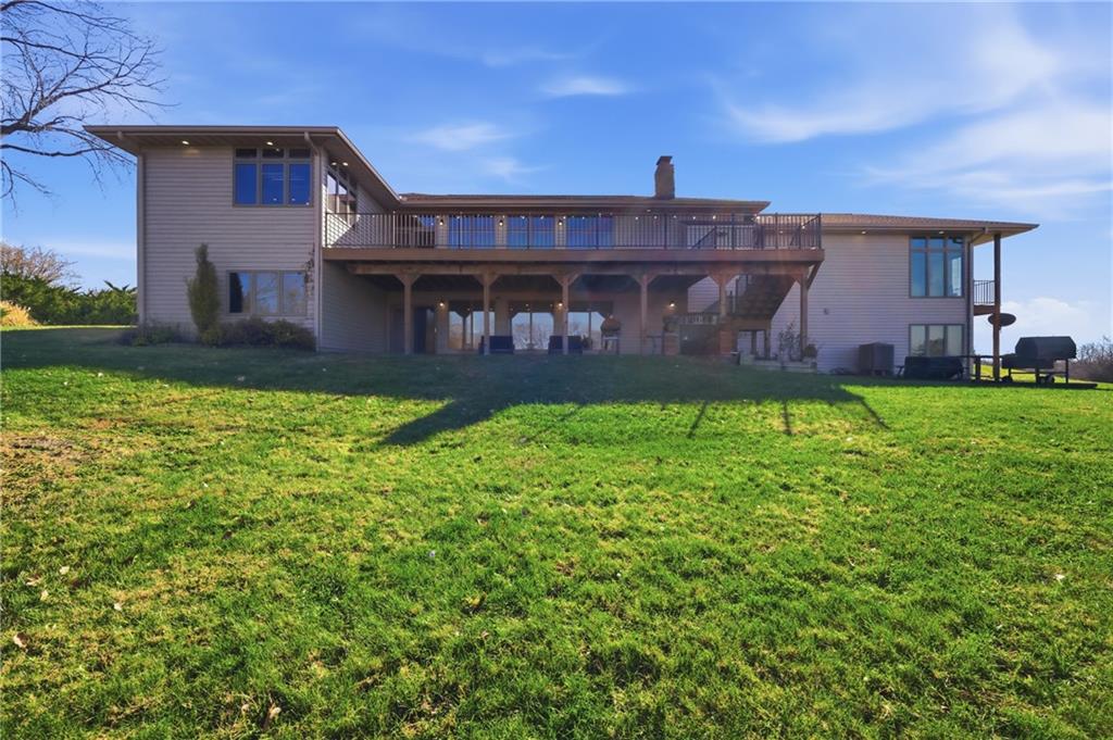 RARE Opportunity to own 115.43 PRIVATE ACRES of land, a Beautiful PRIVATE POND, "AND" a one-of-a-kind, PRIVATELY Owned Luxury Home in Odessa MO (located 20 mins from Blue Springs, MO). This Custom built 4,294 sq ft masterpiece, is truly something special! This home offers 4 bedrooms, 3.5 bathroom, finished basement with a walk-out, and a double sided 3 car garage. Primary bedroom is located on the main level and includes, 2 walk-in closets, double vanity, jetted tub and walk-in shower. Finished walk-out basement offers 3 bedroom, 1 full bath (with shower/tub combo), office, non-conforming room, and large utility/laundry room. Basement walks out to large patio and private pond. Double-sided 3 car garage, is very spacious, has a workshop and full bathroom with a shower in the garage. Kitchen has an open concept, flowing into the formal dining room. Formal living room offers great lighting, a fireplace and a beautiful view of the deck/pond. Hurry in today to tour this beautiful masterpiece that will not last long! Selling *As Is*. This is not a house you simply walk through — it’s a home you feel. A living work of art shaped by vision, precision, and a reverence for beauty that never demands attention — only presence. Zoning: AG -Agricultural District. Acres: 115.43. Private pond, Covered porch, Multiple Decks, Large patio.