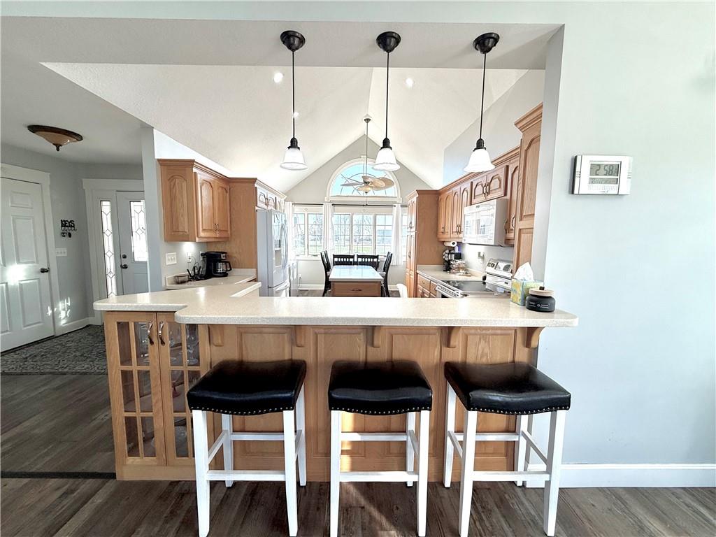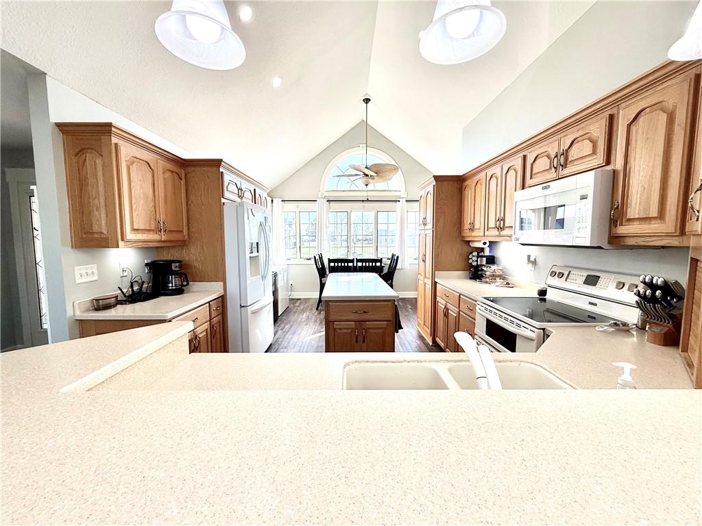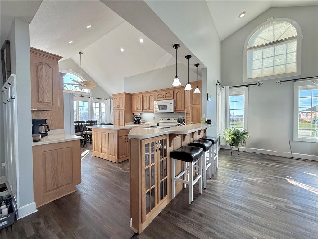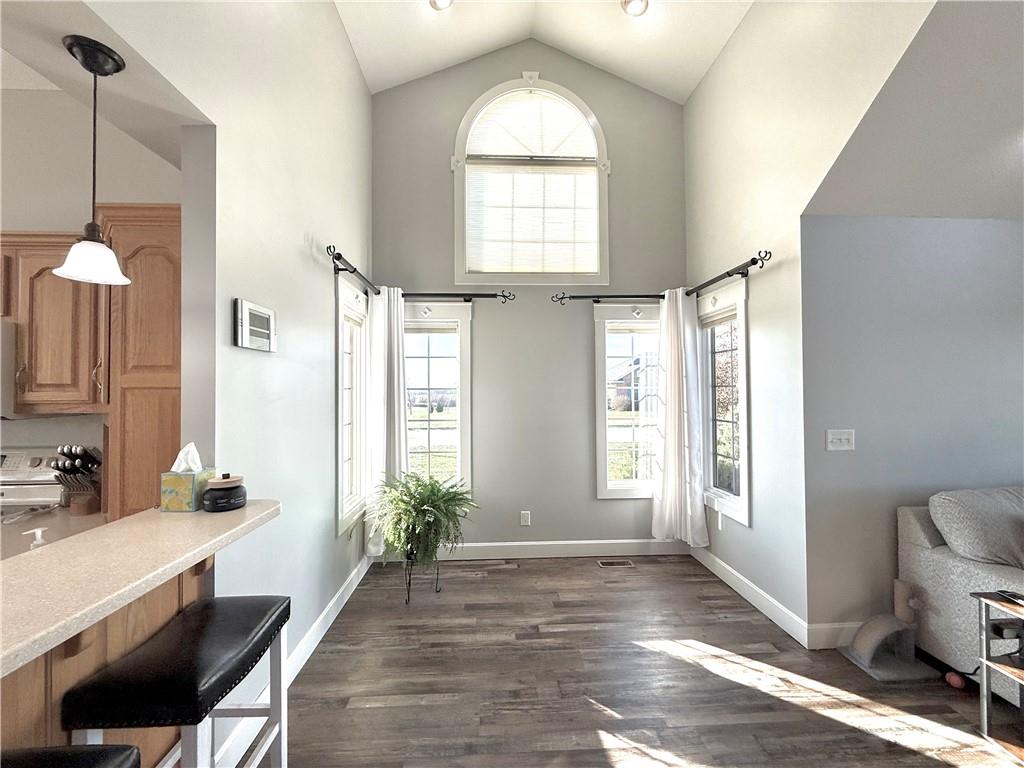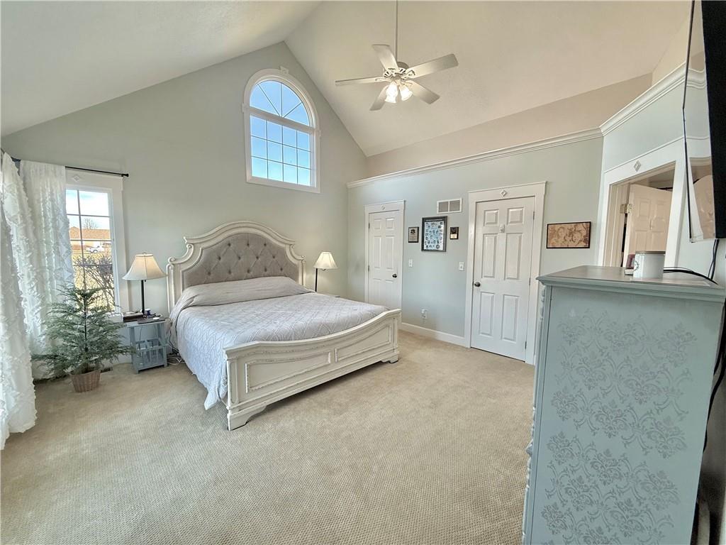 Beautiful custom-built home filled with natural light and designed with an open floor plan and cathedral ceilings. The kitchen offers abundant cabinet space, a center island, bar seating, and an eat-in area, along with additional space for formal dining. An open staircase enhances the spacious feel throughout the home. The enormous primary bedroom features cathedral ceilings and private access to the back deck. The family room also opens directly onto the deck, creating a seamless indoor–outdoor flow. The primary suite includes a large bathroom, completing this luxurious retreat. The basement includes a finished bedroom and offers even more potential with additional space ready to be completed, including a stubbed bathroom. Situated in a beautiful neighborhood on the edge of town, this well-designed home is truly a dream property waiting to be yours.