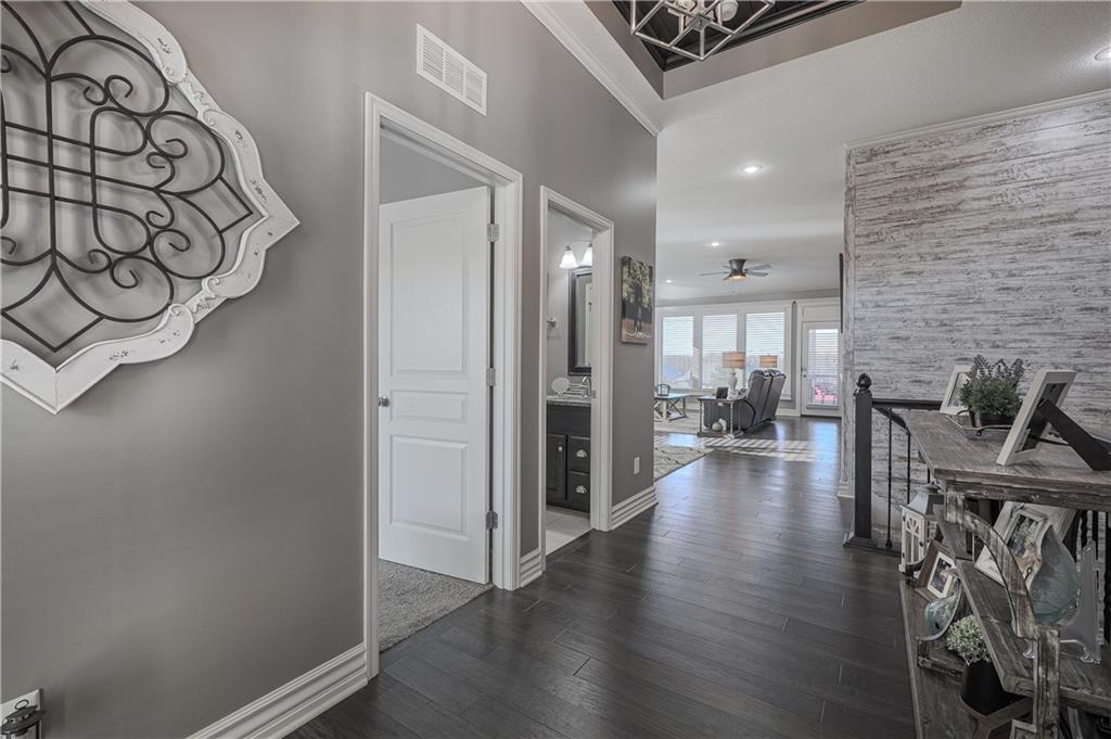 Discover this beautifully maintained Reverse 1.5 Ranch tucked at the end of a quiet cul-de-sac in the highly desired High Point at Creekmoor community. Perfectly move-in ready, this home offers the ideal blend of comfort, luxury, and convenience, all within walking distance to the community pool, clubhouse, and championship golf course. Step inside to an open, inviting floorplan that everyone wants, featuring expansive windows, abundant natural light, and seamless flow throughout. The main level includes a front bedroom & full bath, a dedicated dining area, & a spacious great room with a cozy fireplace. Walk out to the covered deck with stairs leading to the covered patio below, perfect for relaxing or entertaining year-round. The stunning kitchen features quartz countertops, a walk-in pantry, Bosch stainless steel appliances, a gas cooktop, a large island with built-in outlets, & soft-close cabinetry. Every detail is thoughtfully designed. The primary suite is a true retreat, offering a spacious bedroom & a luxurious bathroom with granite double vanities, a beautiful tiled shower, and ceramic tile floors. The large walk-in closet connects directly to the laundry room & mudroom for exceptional convenience. The walkout lower level is fully finished & ready for fun, featuring a generous family & recreation room with a wet bar and mini fridge, a fitness space, two additional bedrooms, & a full bath with tub and shower. Additional upgrades include pre-wired surround sound, a wood fence with a gate that provides easy access for mowing, and added peace of mind. Living in Creekmoor means enjoying resort-style amenities, including a 108-acre fishing lake, biking and hiking trails, playground, clubhouse with restaurant and fitness center, pool, tennis, and an award-winning golf course. This home offers the lifestyle everyone is searching for: open, bright, and beautifully designed, just steps from all the best that Creekmoor has to offer.