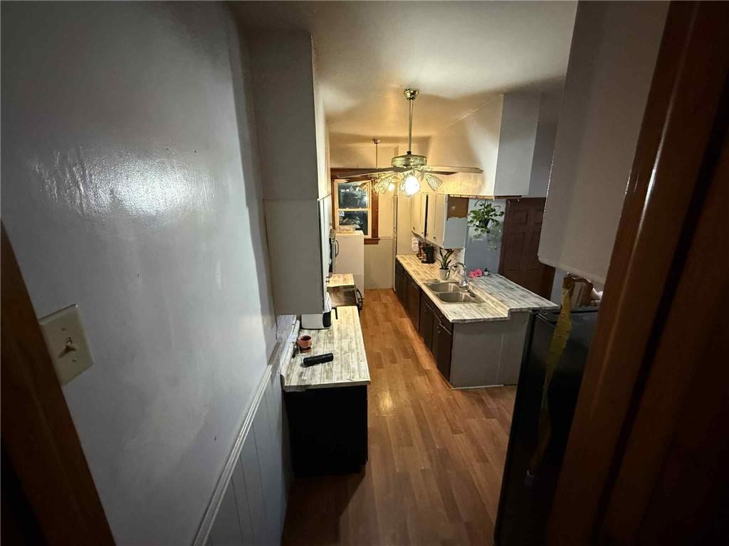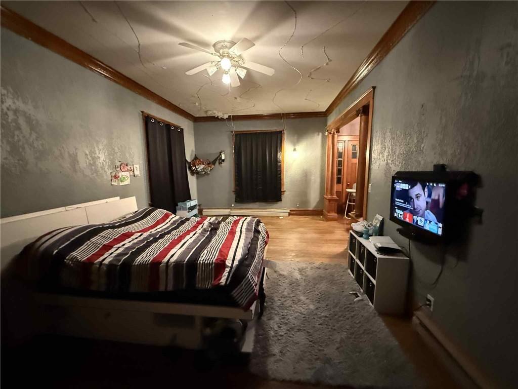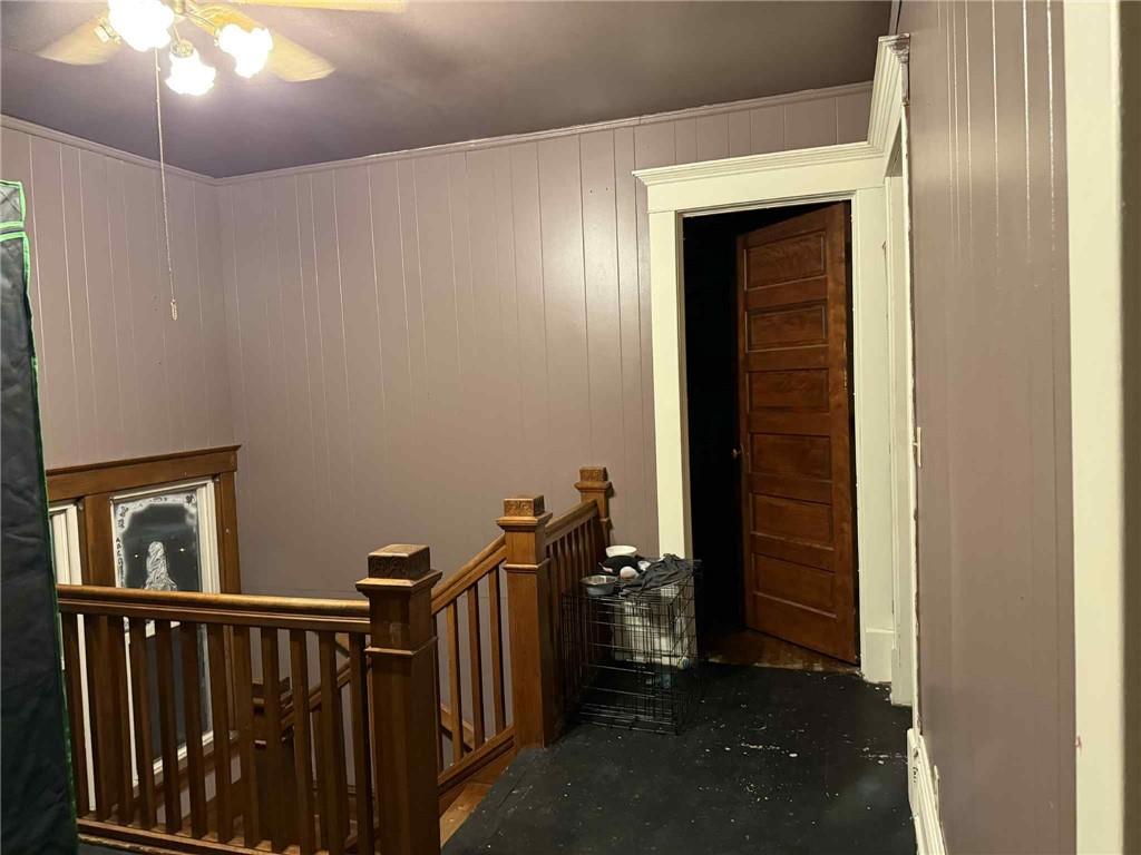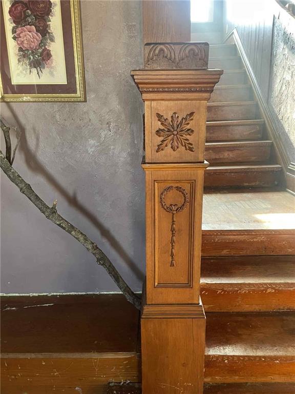 Large 2 story home located on a half a city block in a small town. The home has so much potential: dining room with coffered ceilings, stained leaded glass swinging door to kitchen, plate rail. Large family room with fireplace. Sitting area off kitchen with patio doors out onto deck. Room which was a half bath which Sellers have started will need to be finished how you would like. Large sunroom on main floor, check out all the windows. Upstairs are 3 bedrooms and a full bath and a large landing area with pull downstairs to the attic. Basement is setup for the laundry and a possible full bath and lots of room for storage. The boiler system has had some work done to it and is close to being able to be used. Come enjoy the outdoor space: Large front porch and large back deck. There is a fenced in yard area and 3 car garage. The garage is plumbed so it would be easy to add water. Come fall in love with this fixer upper. Both fireplaces are gas.