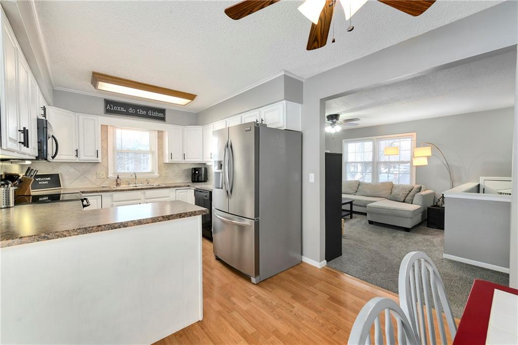 Move-in Ready! New Roof! New Exterior Paint! Updated kitchen cabinets/hardware, light fixtures in hall bath, and light fixtures in primary and guest bedroom. The large living room is so inviting with plenty of natural daylight. The kitchen has plenty of cabinets for storage and peninsula for entertaining. The dining goes out to the covered patio which is perfect for parties and BBQ's. The primary bedroom has a bath with 2 separate vanities and toilet for getting ready in the morning. The finished lower level is perfect for a large family room or 4th bedroom. Laundry room and generous size garage offers room for additional storage. The covered patio (23x19) is perfect for relaxing after a long day at work. The garden shed (14X8) provides valuable outdoor storage and can serve as an area for lawn equipment, gardening tools, workspace or hobby area. The lot is almost a 1/4 acre and is fenced with mature trees. All located in a well-established neighborhood with easy highway access. No HOA! Don't miss this one!