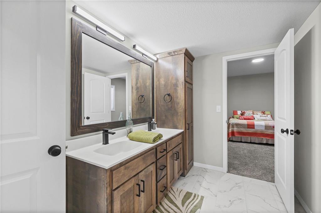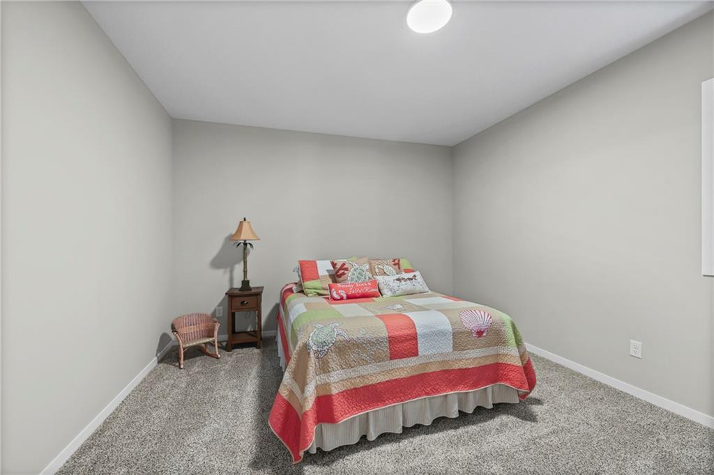 Welcome to this breathtaking modern reverse 11/2 story home backing up to lake. Features a spacious main floor with primary bedroom on main floor and second main floor bedroom too. The kitchen features a large walk-in pantry, large island with open airy floor plan. Covered patio overlooks pond and flat back lawn with sprinkler's. Down stairs, second living area has two bedrooms and bathroom - rec room that walks out to patio. Large 3 car garage to fit lots of toy's. Great floor plan, well maintained home. The pictures are worth a thousand words.