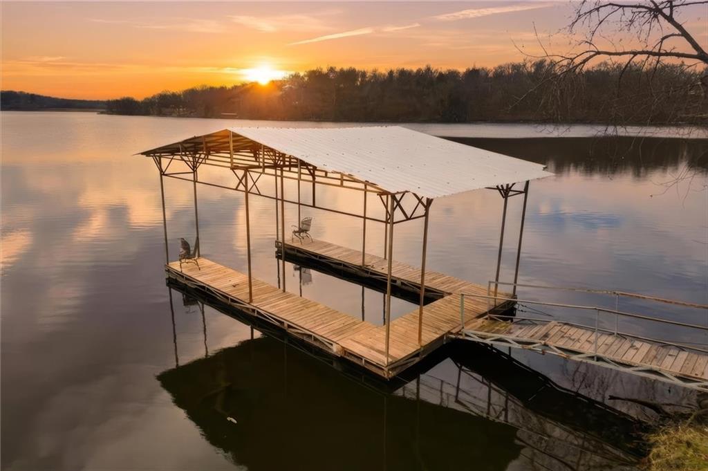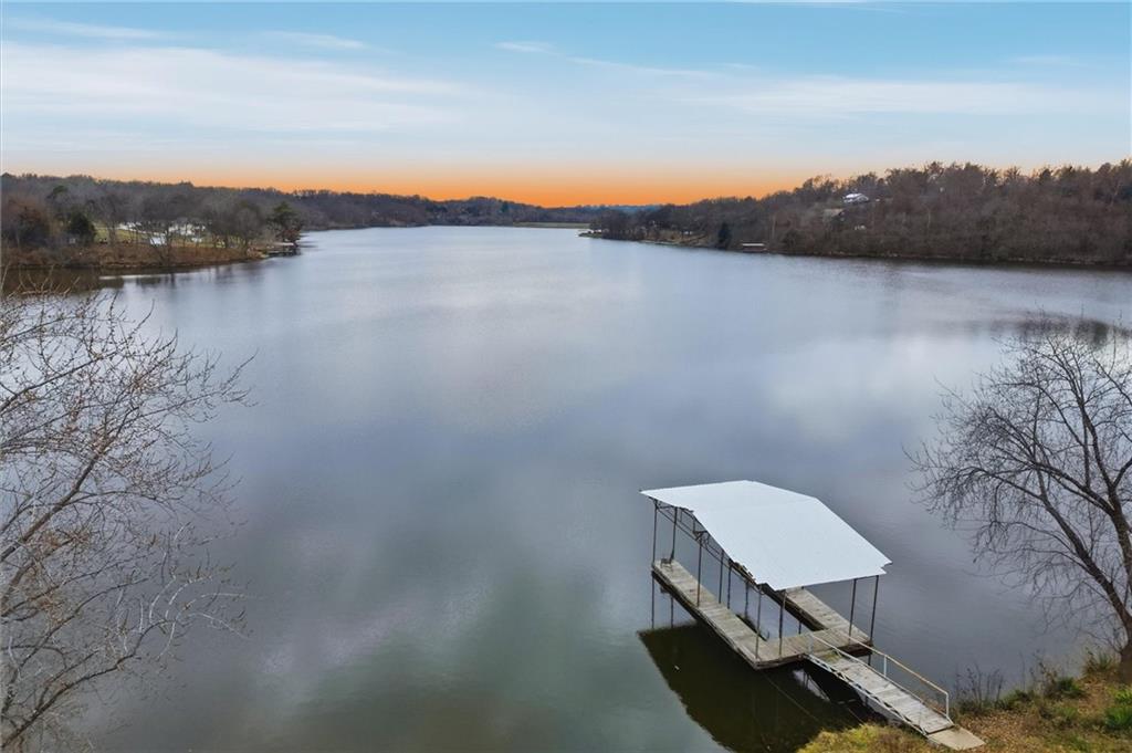 If you’re looking for one-level living, look no further! Enjoy peaceful lakefront living. The spacious living room features breathtaking views of the water—an ideal place to relax and unwind at the end of the day. The main level includes 3 bedrooms, 2 bathrooms, a convenient laundry area off the kitchen, and a large attached 2-car garage. Master bedroom offers two walk in closets. The lower level offers even more space with two non-conforming bedrooms and a family room. (Basement flooring will need to be installed). Outdoor enthusiasts will love the expansive covered boat dock and the impressive 30x40 outbuilding with water, electric, heat, and RV bay—perfect for storage, hobbies, or additional workspace. Home offers maintenance free siding. All kitchen appliances stay. Bring your remodeling and decorating ideas to make this lakefront home like new!