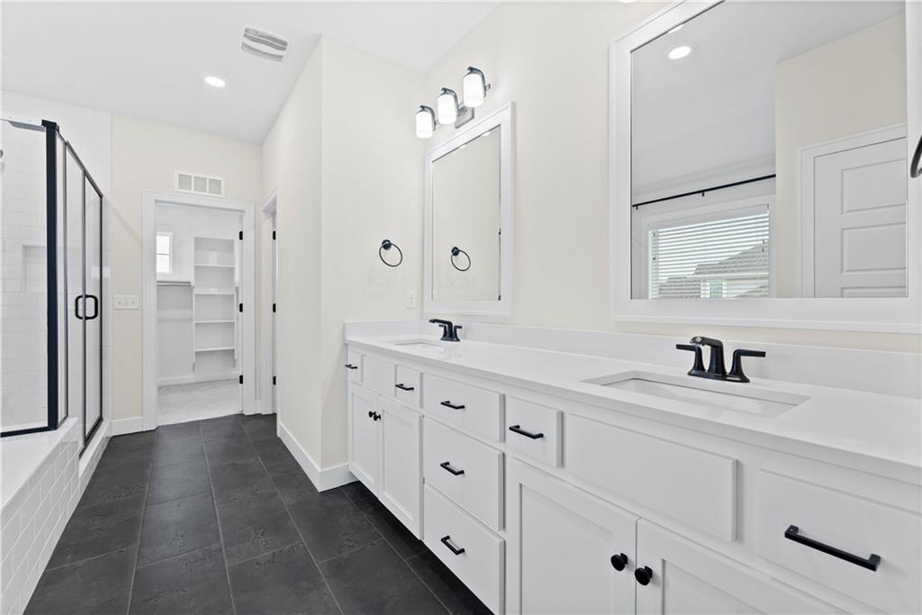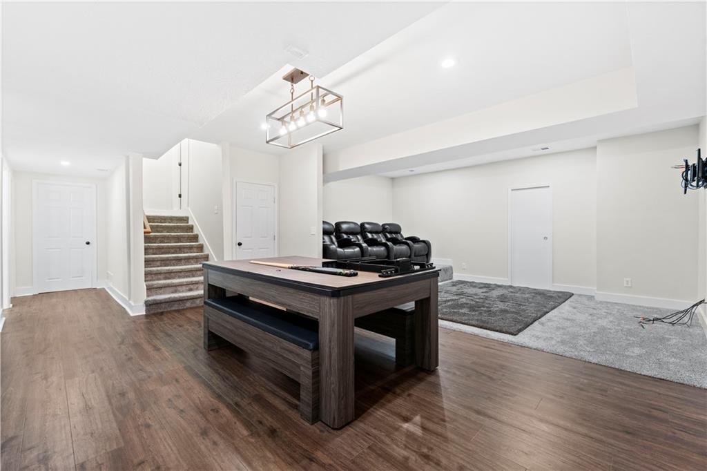 Stunning 6-bedroom, 5-bathroom home with ample space and luxurious features throughout. The main level offers a versatile guest bedroom or office, while the second floor boasts 4 additional bedrooms, including a spacious primary suite with a large bathroom and oversized closet. The finished basement is an entertainer's dream, featuring a theatre room, wet bar, home gym, and a bonus bedroom with a full bath. Outdoors, enjoy the screened-in patio, large concrete patio with built-in fire pit, perfect for gatherings. Centrally located with easy highway access and just a short walk or bike ride to nearby shopping. The Reserve at Woodside Ridge offers a convenient location to highway access, shopping centers, and the Rock Island Trail. The amenities complex features: a club house, pool, pickleball court, hammock garden, and playground area. The HOA dues also include trash, recycling, and paved walking trails.