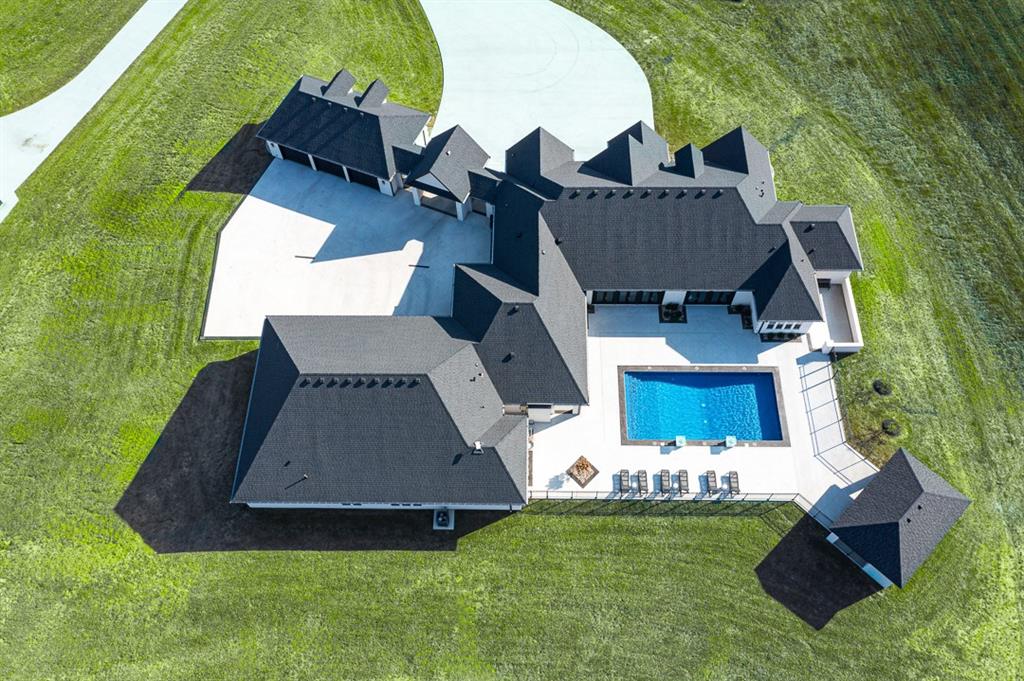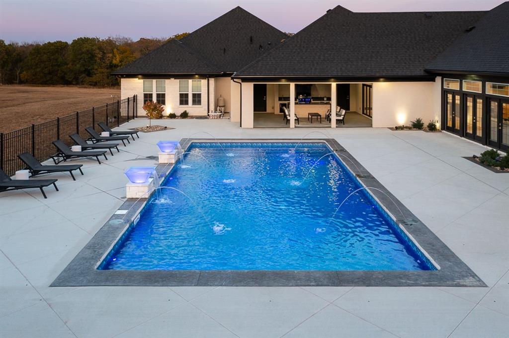 LUXURY 5-BED ESTATE ON 15 ACRES WITH MODERN AMENITIES & RESORT-STYLE LIVING! If you’ve been searching for a high-end home that blends wide-open space with top-tier comfort, this stunning 6,000+ sq ft single-level residence delivers it all. Set on 15 peaceful acres, this estate feels like your own private resort, offering room to breathe, play, and relax in total privacy while still staying close to everyday conveniences. Inside, you’ll find expansive living areas designed for both hosting and unwinding, a true gourmet kitchen with two large islands and a massive walk-in pantry, plus heated floors in every full bathroom for year-round comfort. The home is loaded with modern upgrades, including full home automation, motorized blinds, whole-house audio, custom inset bedroom lighting, two HVAC systems, and two on-demand water heaters. Movie nights are incredible in the dedicated home theater, and outdoor living shines with a covered outdoor kitchen overlooking the custom inground pool with lighted fountains. A separate pool house adds convenience for guests, and the oversized 1,100 sq ft 6-car attached garage gives you all the storage you’ll ever need. The 60x42 shop/barn is perfect for hobbies, equipment, or additional workspace. With 15 acres of beautiful land, this estate offers space, luxury, and a lifestyle that’s hard to match—all in a prime rural setting with great access to surrounding communities.