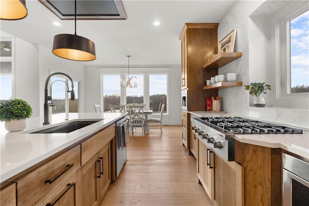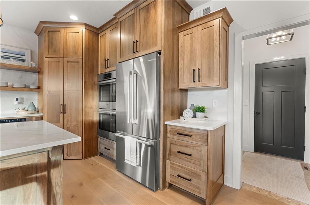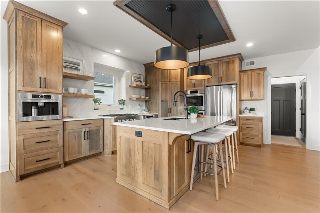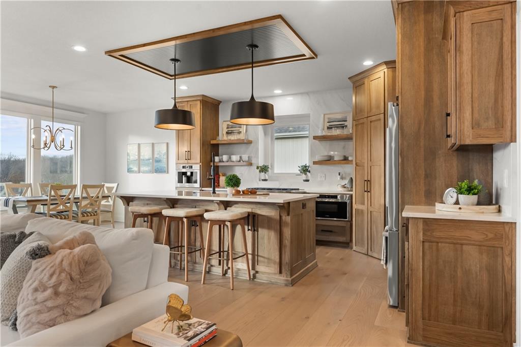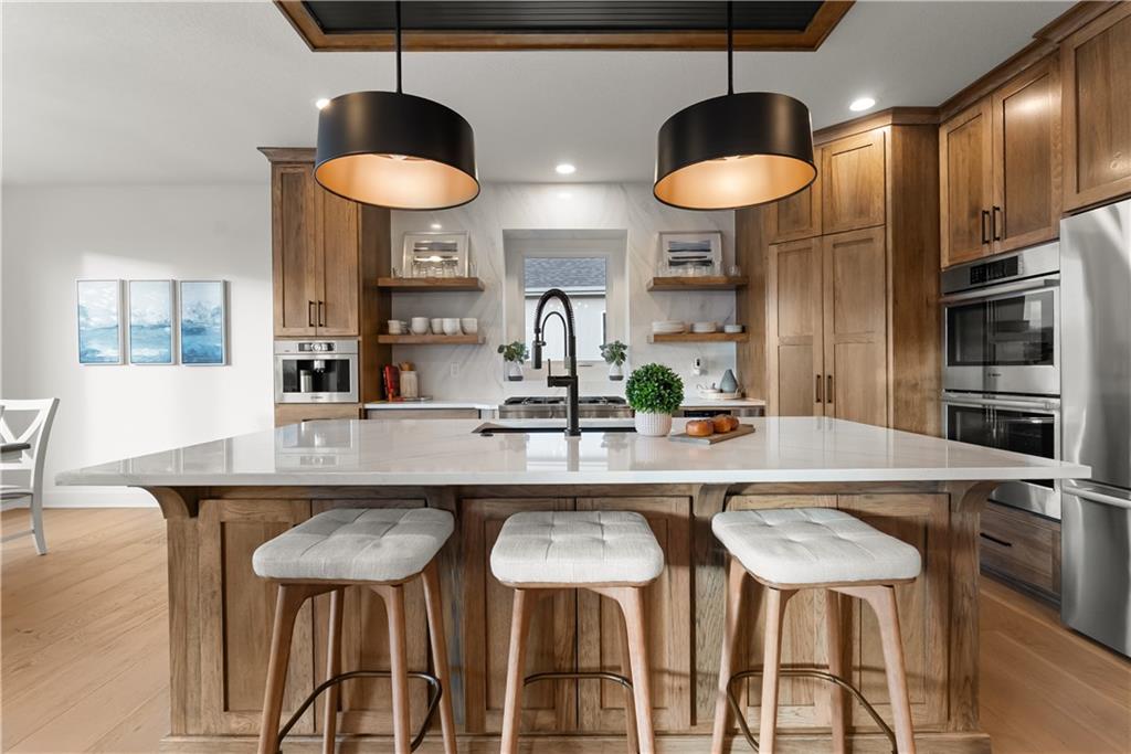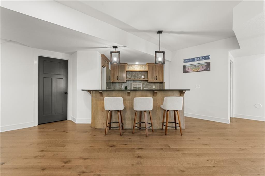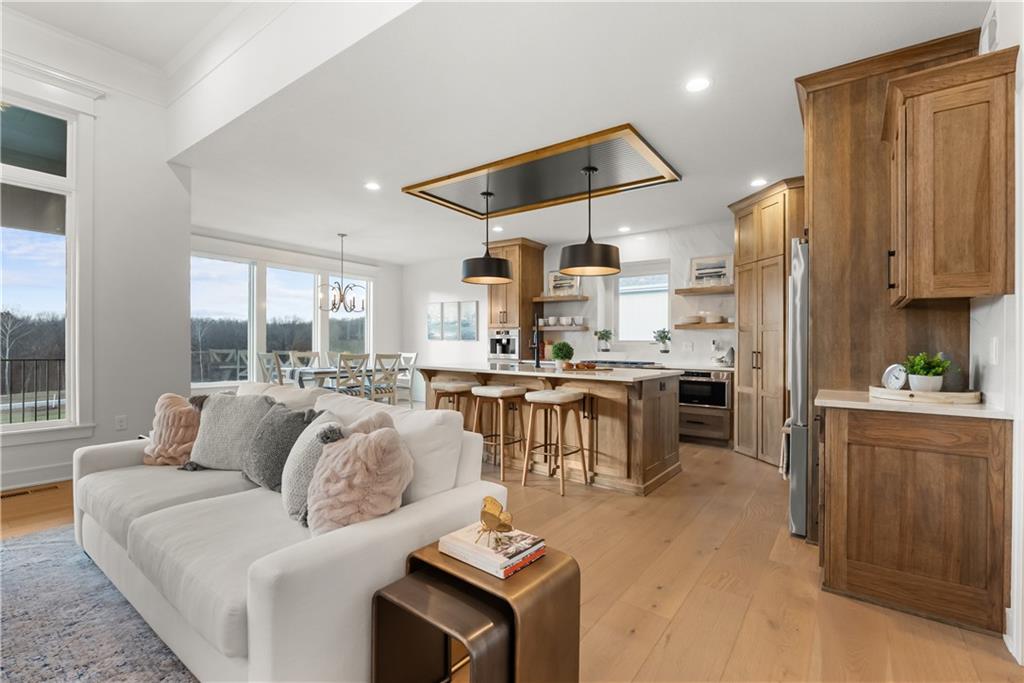 Welcome to a truly special home in highly sought-after Riverstone neighborhood in the Park Hill school district where exceptional design, thoughtful upgrades, and an award-winning build come together in one incredible package. This reverse 1.5-story residence stands out from anything else on the market. Every detail from the flooring and cabinetry to the fixtures, appliances, and trim was intentionally elevated to showcase the very best. All premium appliances, including the washer and dryer, stay with the home.Step inside to an inviting open-concept main level featuring soaring ceilings, a generous dining area, and a large kitchen island perfect for gathering. The kitchen shines with abundant cabinetry, upgraded finishes, and a spacious walk-in pantry offering ideal storage. Two bedrooms on the main level include a beautifully appointed primary suite.The lower level is made for entertaining, offering a fantastic rec room and a stylish wet bar. You’ll also find a third bedroom and a fourth non-conforming bedroom currently used as a pool-table room easily converted back if desired. The layout provides flexibility for guests, kids, hobbies, or future needs. Located in one of the most desirable school districts in Kansas City, this home offers not only luxury and convenience but also an incredible sense of community and pride of ownership.If you’ve been waiting for a home that delivers craftsmanship, comfort, and a meaningful story this is the one.