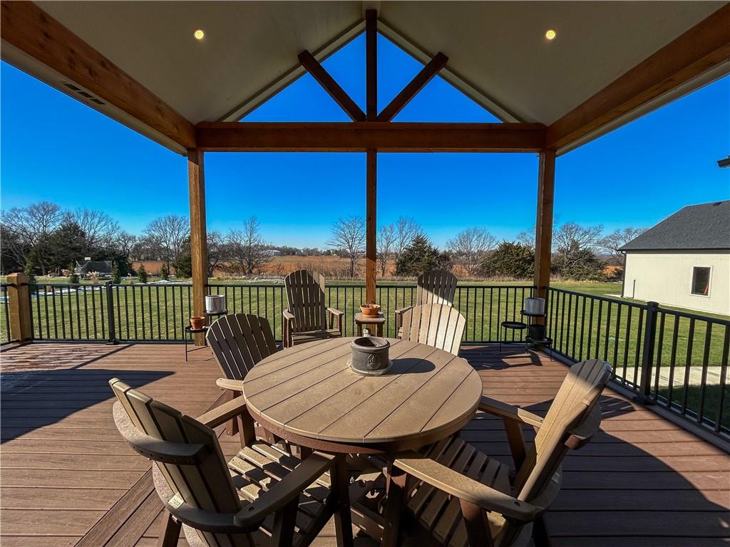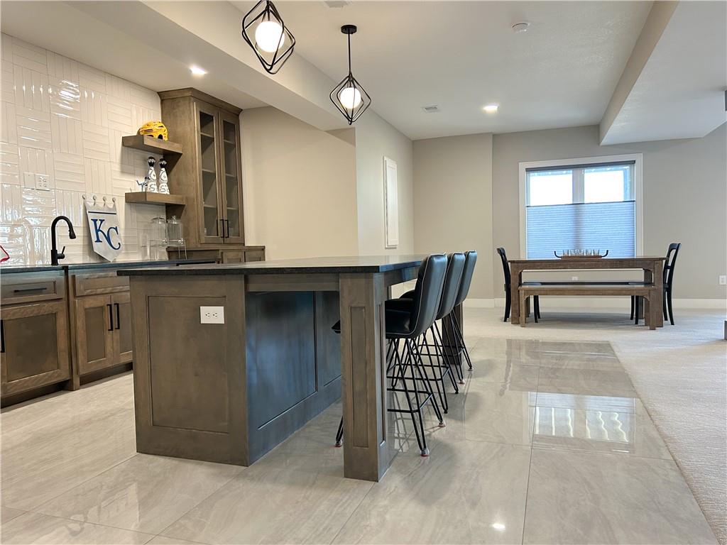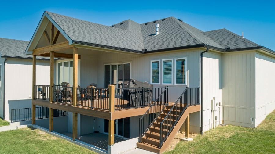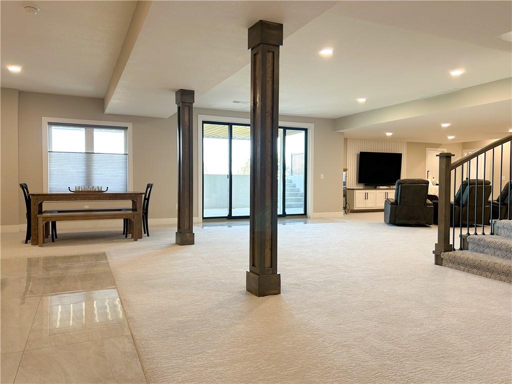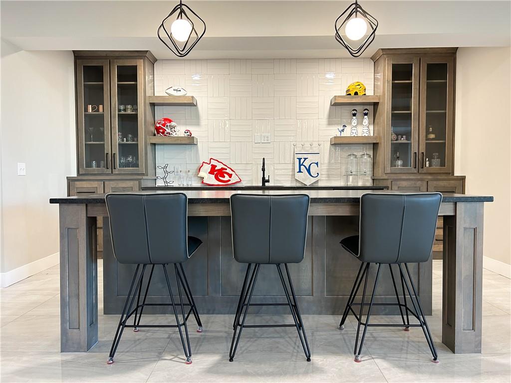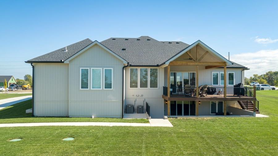 Welcome home to this stunning ranch with a walkout basement, perfectly positioned on a beautiful 1-acre lot. Thoughtfully designed with high-end finishes and spacious living in mind, this 5-bed, 4.5-bath home truly has it all. Step inside to an expansive open floor plan featuring a striking floor-to-ceiling fireplace, abundant natural light, and seamless flow throughout the main level. The kitchen boasts quartz countertops, a large island, custom cabinetry, and an impressive butler’s pantry offering exceptional storage and prep space. The luxurious main-level primary suite is a retreat of its own, complete with an elegant ensuite, a large walk-through closet, and a convenient attached laundry room. Two additional main-level bedrooms share a stylish Jack-and-Jill bathroom. Follow the curved staircase to the fully finished lower level, where you’ll find a spacious family room, a walk-up bar/kitchen area, two more sizable bedrooms (one with a private ensuite), and an additional guest bath—perfect for entertaining or hosting overnight guests. The attached 3-car garage opens into a generous mudroom with built-ins, and a nearby half bath for everyday convenience. Host gatherings on your spacious, covered deck, or relax and take in the serene views from your backyard. Outside, a newly built 30x51 heated and cooled garage provides incredible additional parking, storage, or workshop space—ideal for hobbyists, car enthusiasts, or anyone needing extra room. With its beautiful views, abundant space, and prime location near highway access and city conveniences, this DeSoto gem is the perfect blend of comfort, style, and functionality. This home truly has it all!