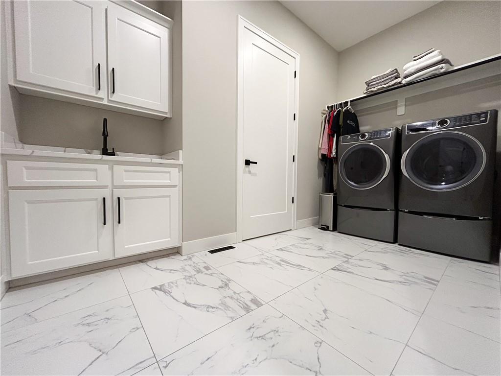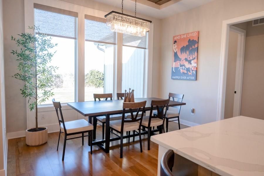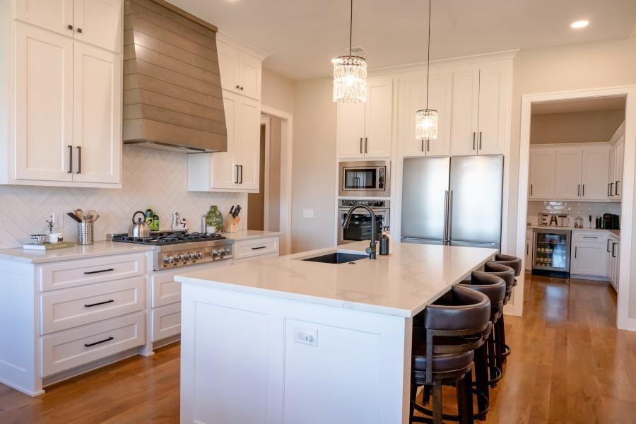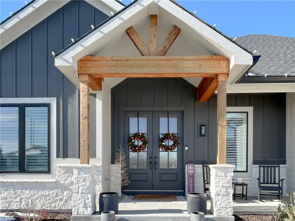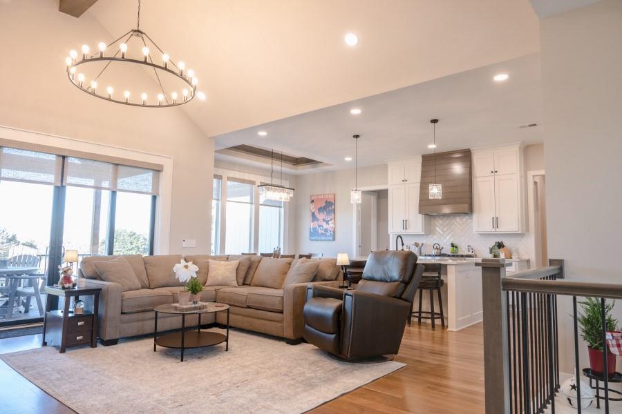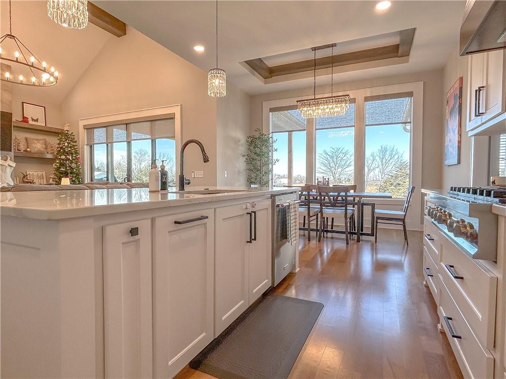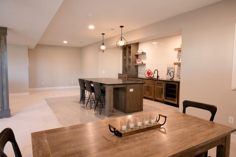 Welcome home to this stunning ranch with a walkout basement, perfectly positioned on a beautiful 1-acre lot. Thoughtfully designed with high-end finishes and spacious living in mind, this 5-bed, 4.5-bath home truly has it all. Step inside to an expansive open floor plan featuring a striking floor-to-ceiling fireplace, abundant natural light, and seamless flow throughout the main level. The kitchen boasts quartz countertops, a large island, custom cabinetry, and an impressive butler’s pantry offering exceptional storage and prep space. The luxurious main-level primary suite is a retreat of its own, complete with an elegant ensuite, a large walk-through closet, and a convenient attached laundry room. Two additional main-level bedrooms share a stylish Jack-and-Jill bathroom. Follow the curved staircase to the fully finished lower level, where you’ll find a spacious family room, a walk-up bar/kitchen area, two more sizable bedrooms (one with a private ensuite), and an additional guest bath—perfect for entertaining or hosting overnight guests. The attached 3-car garage opens into a generous mudroom with built-ins, and a nearby half bath for everyday convenience. Host gatherings on your spacious, covered deck, or relax and take in the serene views from your backyard. Outside, a newly built 30x51 heated and cooled garage provides incredible additional parking, storage, or workshop space—ideal for hobbyists, car enthusiasts, or anyone needing extra room. With its beautiful views, abundant space, and prime location near highway access and city conveniences, this DeSoto gem is the perfect blend of comfort, style, and functionality. This home truly has it all!