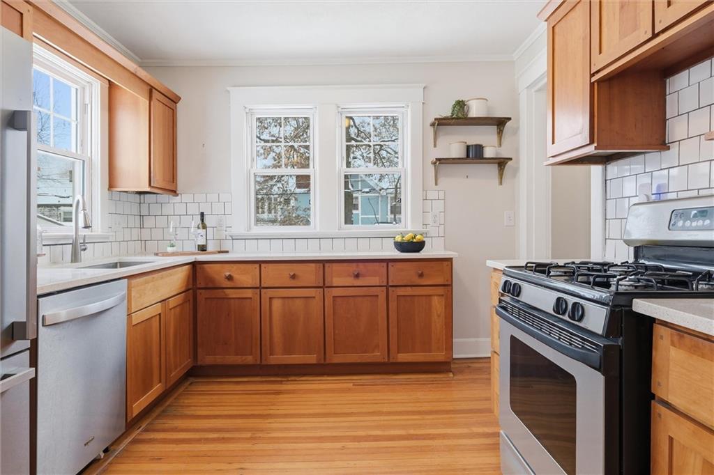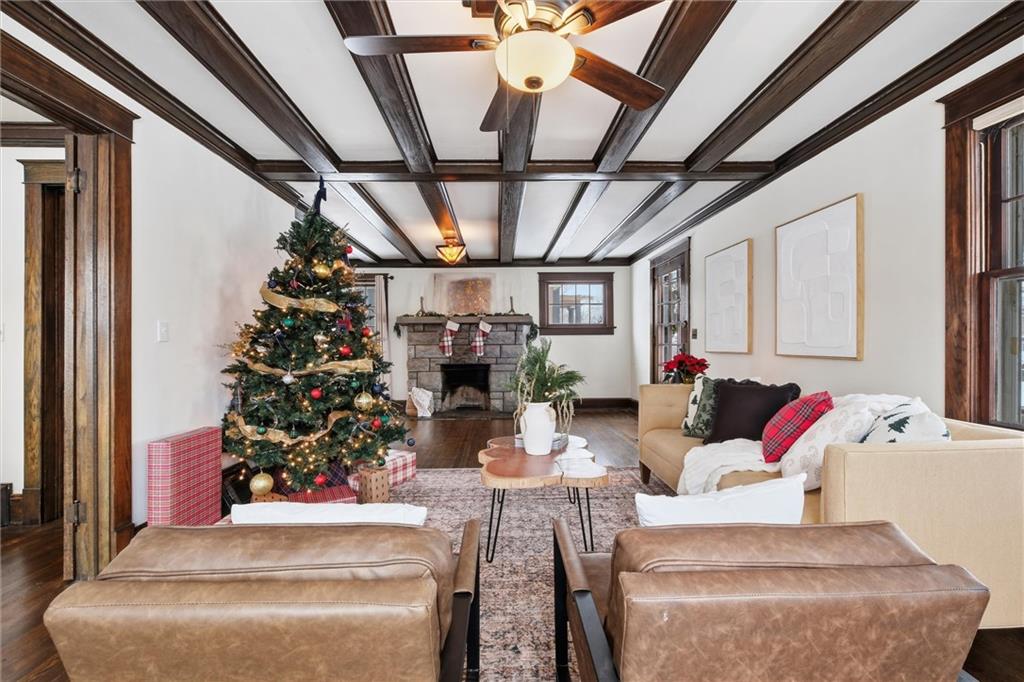 Step onto the charming front porch of this timeless three-story home and instantly feel its character. Thoughtful Craftsman details, original moldings, rich woodwork, and vintage hardware create warmth at every turn while tasteful updates blend modern comfort with classic style. The inviting living room centers around a gorgeous stone fireplace, perfect for slow mornings or evenings with friends, and flows seamlessly into the formal dining room for easy entertaining. The updated kitchen features quartz countertops, a gas range, and newer stainless steel appliances. Upstairs, retreat to the serene primary suite with two walk-in closets and a beautifully renovated bath complete with double vanity, marble counters, tile floor, and a spacious walk-in shower. Additional bedrooms offer versatility for guests, office, or play space. The partially finished lower level is ready for your personal touch and provides valuable extra living or storage space. Location is everything, and this one is unmatched. Just blocks from Crestwood Shops, South Plaza, and the streetcar extension for quick access to the Plaza, UMKC, and downtown. Spend your weekends strolling to Loose Park or exploring nearby trails surrounded by beautiful scenery. This home sits at the heart of Kansas City’s most beloved neighborhoods with incredible walkability. Charm, updates, and an A+ location. Make this endearing home yours.