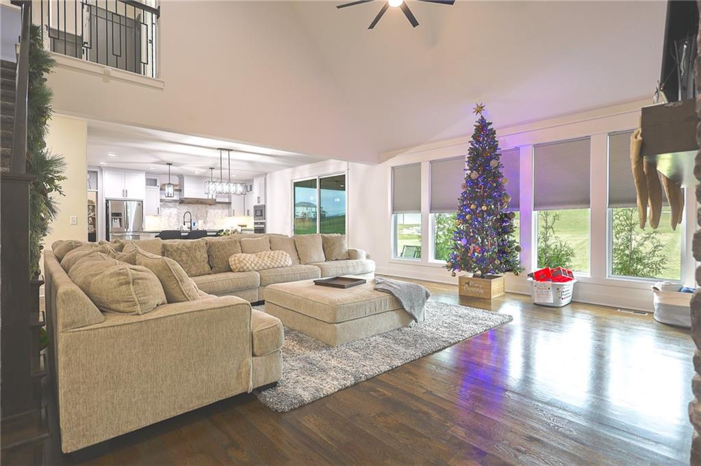 Perfectly sited on a premier corner lot within the prestigious Prairie Field community—highly acclaimed Liberty School District—this exceptional 1.5-story residence by McBee Custom Homes redefines modern luxury. The Gallatin is a home where architectural intention meets elevated comfort, creating a sophisticated living experience that feels both grand and effortlessly livable. From the moment you step inside, you’re welcomed by an awe-inspiring Great Room with dramatic vaulted ceilings and sun-filled, open-concept living. The designer kitchen serves as the heart of the home, anchored by a statement island that invites conversation and connection. An expansive walk-in pantry offers the kind of storage typically reserved for custom luxury builds. The main-level primary suite is a serene sanctuary, featuring a spa-inspired bath with a free-standing soaking tub, an indulgent walk-in shower, and timeless finishes that exude calm and sophistication. Upstairs, three beautifully appointed bedrooms and two full bathrooms offer exceptional versatility. Whether used as private guest suites, a children’s wing, a loft, or a boutique-style office, this level adapts seamlessly to your lifestyle. A second flex room on the main level elevates functionality even further—perfect as an executive office, library, music room, playroom, or formal dining space. Your possibilities are truly limitless. The lower level provides an expansive storage area with an egress window, creating the perfect canvas for a future bedroom or custom-designed additional living quarters. Outdoors, the home’s ideal southern orientation provides luxurious shaded evenings on the covered porch—your private retreat for slow sunsets, quiet moments, and effortless entertaining. The Gallatin is more than a home—it’s a statement of style, comfort, and craftsmanship in one of the area’s most desirable communities. A rare opportunity to own a property where luxury meets lifestyle in the most seamless way.