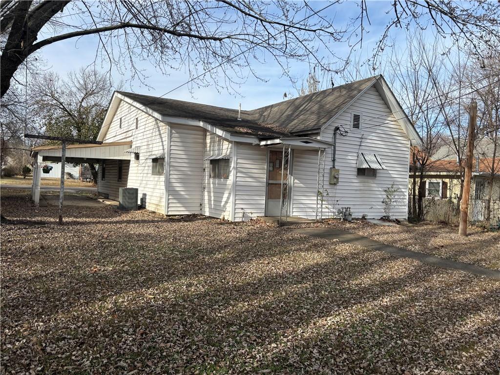 Tidy 2 BR home, central heat/air, near grade school in low traffic neighborhood. Roof new 2013, vinyl siding, storm windows, attached carport and storage shed. Seller says you will find some hardwood floors under carpets! Parking and driveway have access from front and rear alley. Easy access to Hwy 54 (Wall St.) for travel, employment and shopping. Great starter or investment property. Selling AS IS, but buyer may have inspections.