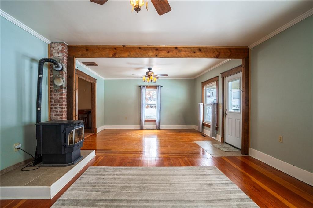 Step onto the inviting front porch of this wonderful 2-story home, perfect for morning coffee or evening relaxation. Inside, you’ll find 3 generously sized bedrooms and 2 full baths, all enhanced by wood floors throughout. The heart of the home—a large, bright kitchen—offers ample space for cooking and gathering, complemented by a formal dining room and a cozy eat-in area. Enjoy the convenience of main-floor laundry, a pellet stove for those chilly evenings, and central air for year-round comfort. The unfinished basement provides endless possibilities for storage or maybe a workshop. Outside, the expansive ¾-acre lot offers plenty of room for gardening, play, or entertaining family and friends. This home combines timeless charm with modern comfort—ready for you to make it your own!