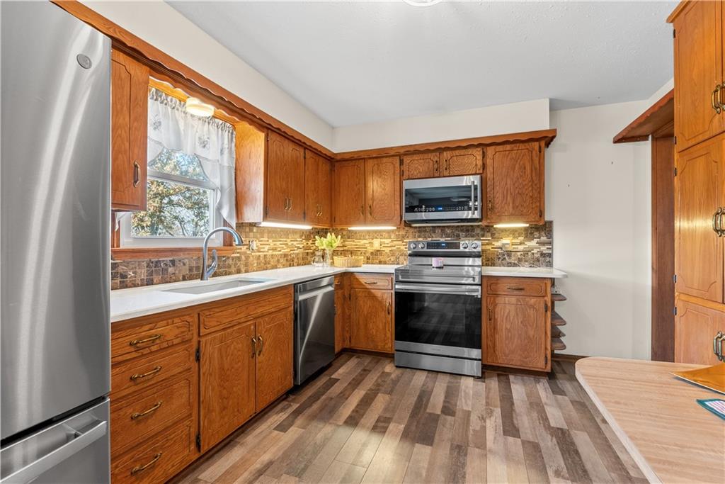 Tucked in the peaceful neighborhood of Northland, known for its gently rolling hills and mature trees, this move-in ready home offers the best of both worlds—updated interior finishes with easy access to Hwy 50, shopping, UCM, and Whiteman Air Force Base. The main level has been refreshed with updated flooring and a clean, neutral color palette that feels bright, welcoming, and easy to make your own. The kitchen is well-appointed with plenty of cabinet space, solid-surface countertops, and newer kitchen appliances—and yes, they stay! Step outside and you'll see the care continues. The landscaping has been thoughtfully improved, giving the exterior a tidy, well-kept look that adds to the home’s curb appeal. Downstairs, the walk-out basement features a cozy fireplace, built-in shelving, and a bar area—offering plenty of potential for entertaining or additional living space. (Note: a prior owner removed some of the drywall and flooring, so buyers should verify finished sq ft to their own satisfaction.) Whether you're looking for your first home or your next chapter, this one checks all the boxes: updates, location, and room to grow. Schedule your private showing and come see the possibilities for yourself. Move in Ready!