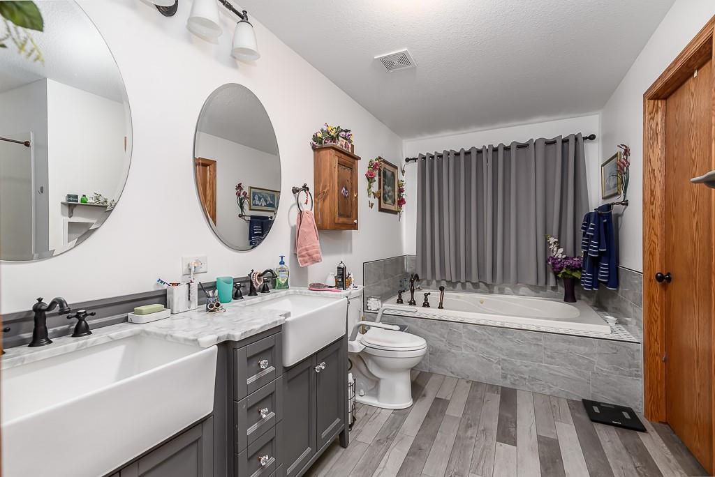 3-BED RANCH ON ALMOST 5 ACRES WITH BIG VIEWS SITTING ON 4.69 ACRES WITH WIDE OPEN SCENIC VIEWS, this 3-bedroom ranch offers the relaxed country setting buyers love. Inside, the open floor plan feels bright and welcoming, with the primary suite set apart for added privacy. It features a walk-in closet, double vanities, a jetted tub, and a separate shower. The other two bedrooms and full bath sit on the opposite side of the home for a simple, functional layout. A covered front porch adds charm, and the full unfinished walkout basement gives you tons of room to expand, including a large workshop area. The commercial quality 60x80 red-iron shop is a standout, offering two 16x16 drive-in doors, two walk doors, insulation, heat, and water—great for running a business, storage, or equipment. The acreage brings space, peaceful views, and plenty of wildlife. This country property offers room to grow and a setting that feels miles away while still within easy reach of town conveniences.