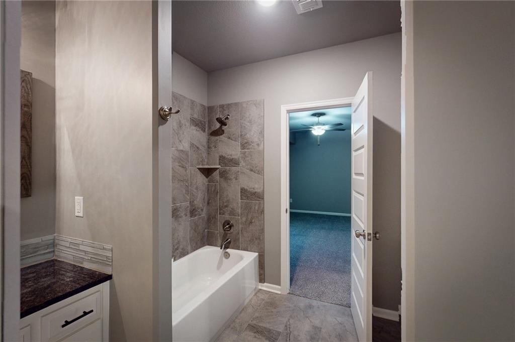 This beautiful Trumark Home - The Marie II is a Reverse 1.5-story / Ranch. This home is move-in ready and only 6 years young! Featuring 4 bedrooms, 3.5 baths, and a 3-car spacious garage, this property sits on nearly half an acre—one of the largest lots in the neighborhood—complete with a fenced backyard. Step inside to an open, high ceiling, inviting floor plan with a spacious living room that flows seamlessly into the dining area and kitchen. The kitchen offers granite countertops, ample cabinetry, a walk in pantry AND a butler’s pantry with a wine fridge for added convenience. The main-level Primary Suite includes a large walk-in closet with pulldowns connected to the laundry room, plus a gorgeous en-suite bath with quartz countertops. A second main-level bedroom adds versatility for guests or office space. The finished lower level expands your living space with a generous family room and wet bar, along with Bedroom #3 featuring a private full bath, and Bedroom #4 with an attached half bath. A storm shelter provides peace of mind. Outdoor living shines with an oversized stamped patio, built-in firepit, and a grill gazebo that stays. The back quarter of the yard is home to multiple garden areas with strawberries and blueberry bushes, and a 6-zone sprinkler system keeps everything lush and green.