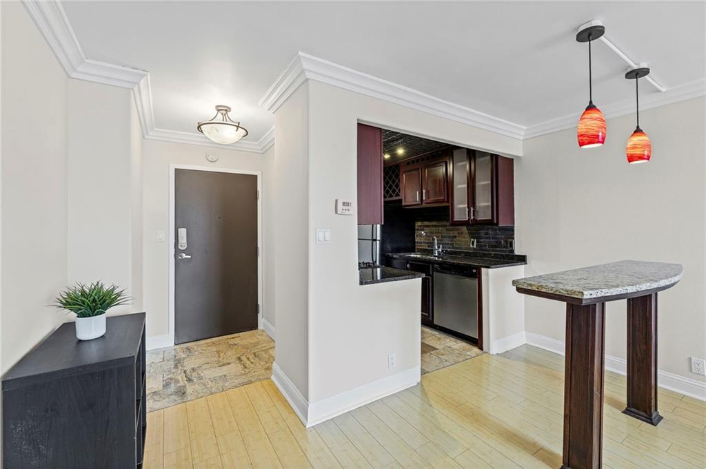 Experience luxury urban living at The Manhattan! This beautifully designed condo welcomes you with an open layout featuring gleaming bamboo floors, a stylish stand-up granite island, granite countertops, a gas stove, and rich cherry cabinets. The spacious primary bedroom includes a versatile bonus room, ideal for a generous walk-in closet or your own private home office. In-unit washer and dryer provide everyday convenience. Enjoy a host of high-end amenities including, Expansive fitness center, relaxing sauna, and tanning bed, rooftop swimming pool with panoramic city views, private movie theater and business meeting room. On-site coffee shop and hair salon for daily ease and comfort. The HOA takes care of it all: water, sewer, trash, electricity, gas, 24/7 security, on-site management, common area maintenance, landscaping, winter services, pest control, and access to all amenities—offering true peace of mind. Unbeatable location near the KC Streetcar, just steps from the vibrant Power & Light District, River Market, KC Current stadium, and so much more. The Plaza is only minutes away, putting the best of Kansas City right at your doorstep.