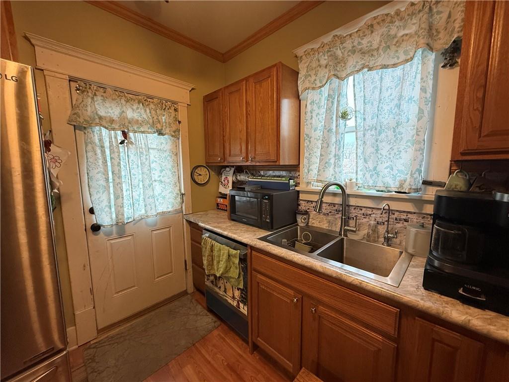 This is a cozy home with plenty of space for everyone. With an updated main level bathroom that is handicap accessible. This home sits on a large corner lot. The porch has been improved with composite materials so no need to paint or stain in the future. A large deck accessed from the kitchen perfect for grilling and smoking. A fenced in area for letting your dogs right out the door. Storage sheds outside with space to store your outdoor toys and mowers.