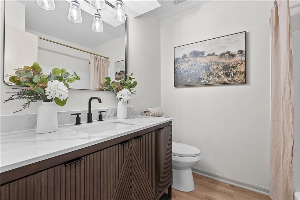 Step inside this fully renovated home where every inch has been thoughtfully refreshed, leaving absolutely nothing to do but move in. From top to bottom, this home is truly new, new, new. Located on a quiet street, the exterior welcomes you with fresh paint, a brand-new roof, and new gutters—offering peace of mind from day one. Inside, you’ll immediately notice the cohesive updates throughout, including all-new flooring, modern fixtures, and fresh paint that create a bright, clean, and inviting feel. The brand-new kitchen is a standout, featuring new cabinetry, updated countertops, and a layout designed for both everyday living and entertaining. All bathrooms have been updated with stylish finishes and a fresh, modern look. The fully finished basement provides additional living space—perfect for a second living area, home office, gym, or guest space—and includes a large laundry and utility room for added functionality and storage. Step outside to a backyard that offers minimal neighboring views—ideal for relaxing evenings, gatherings, or enjoying your own outdoor space. This is a truly remarkable home packed with updates, comfort, and convenience, allowing you to spend less time on projects and more time enjoying your new home. Owner/Agent