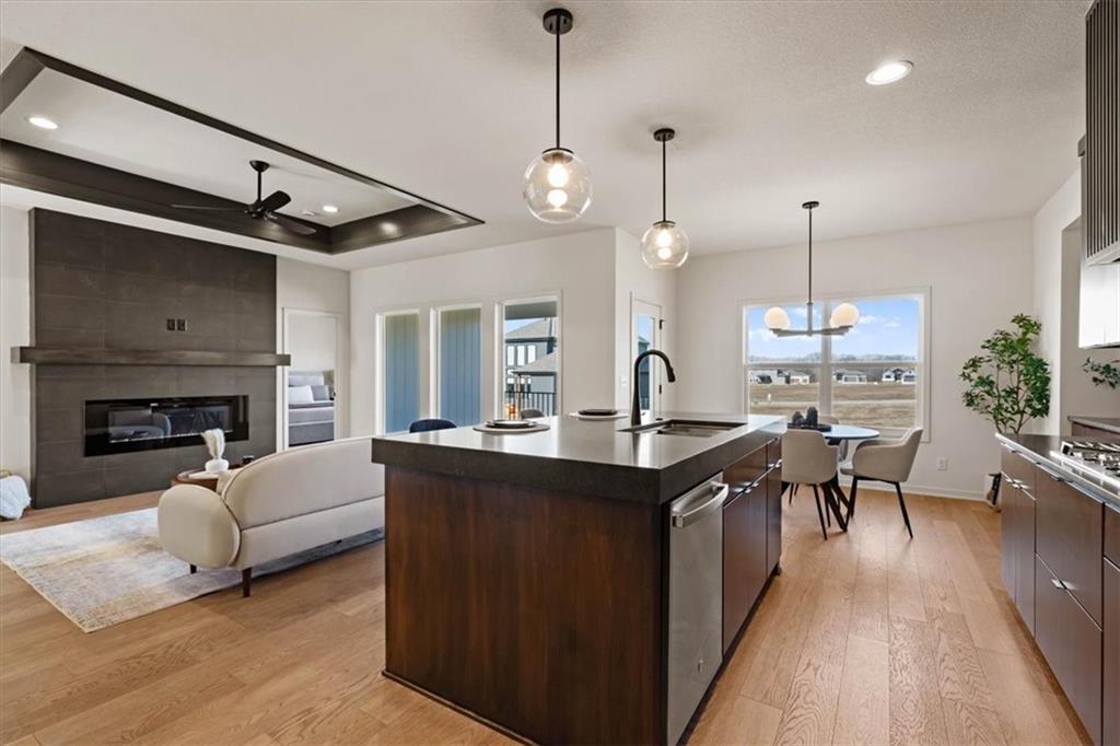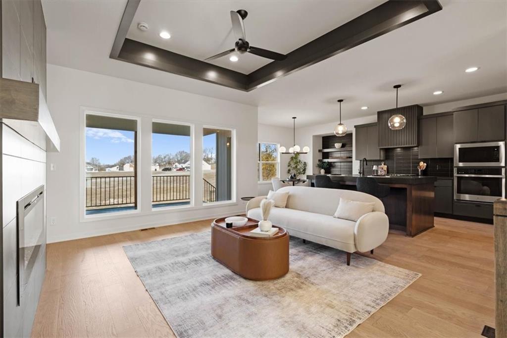 WOW... The design and flow of this home is amazing!!! The Greystone by Elevate Design + Build is a 4-bedroom, 3-bathroom home sits on a day-light lot showcasing a sleek modern design with an open layout flooded with natural light. The home includes high-end fixtures & finishes throughout! The spacious finished lower level is perfect for entertaining or relaxing. This builder highlights the craftsmanship and attention to detail that elevate new construction in Lees Summit. This home is close to the community pool and move-in ready!
