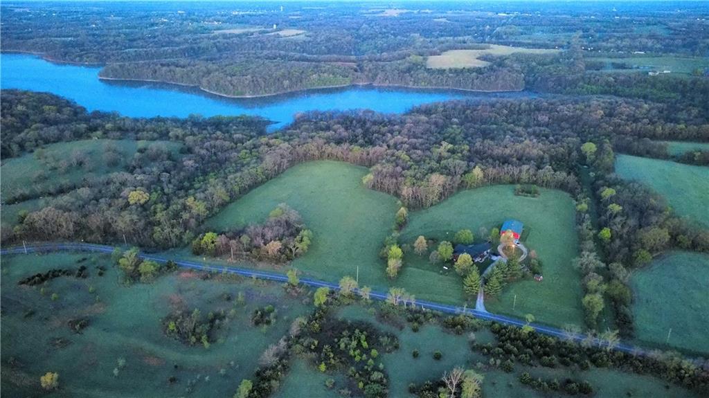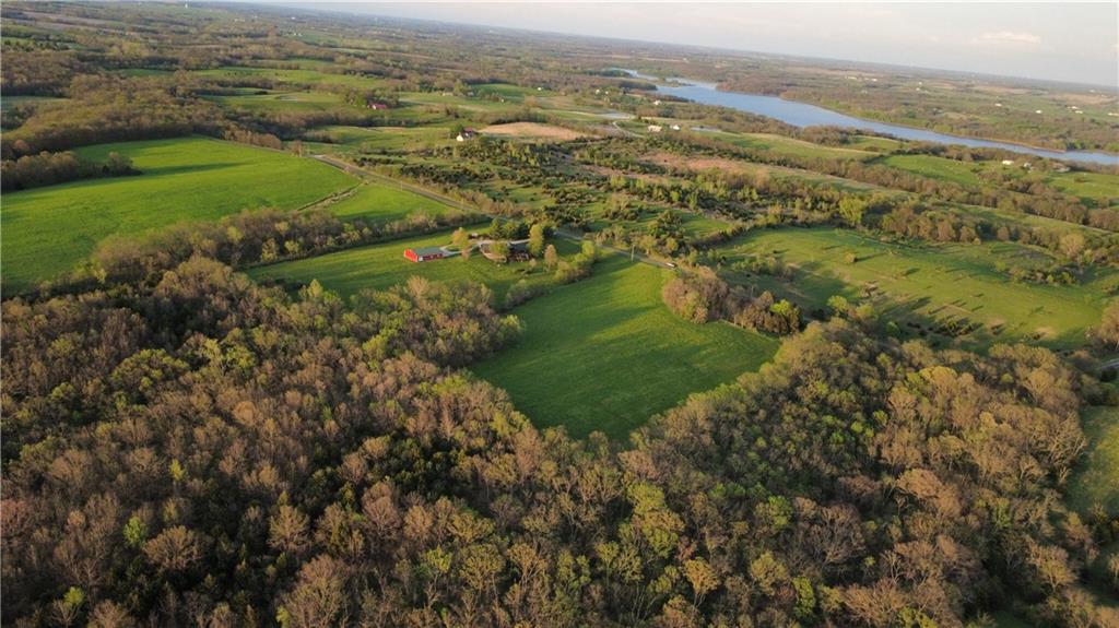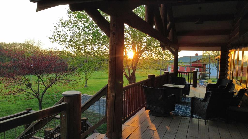 Tucked away on 23 breathtaking acres, this 3,162 sq. ft. Craftsman ranch–style custom log home offers a rare blend of thoughtful design, and unmatched natural surroundings. Built in 2003 and lovingly maintained by its original owners, the home showcases full-round log construction in the central living areas, featuring exposed log trusses, open doorways, and a striking Palladian-style arched picture window that fills the space with natural light. Covered front and back porches invite you to relax and take in the peaceful setting, while cedar-sided, stick-built wings balance beauty with functionality. The main level is designed for effortless living, offering a spacious kitchen, living and dining areas, a walk-in pantry, and custom cabinetry and built-ins throughout. The primary suite includes a full bathroom and a walk-in closet. Two additional bedrooms, a second full bath, multiple linen closets, and a convenient laundry/mudroom are also on this main level. The finished walkout basement expands the living space with a fourth bedroom, third full bathroom, open living/game room, bar, safe room, and abundant storage—including a large utility room and under-stair storage. Comfort and efficiency in the home are enhanced by central air, a heat pump with propane backup, a wood stove fireplace, a radon mitigation system, and high-speed fiber internet. Outdoors, the property is equally impressive with an attached extra deep two-car garage, concrete driveway and patio, 42’ x 64’ shop/barn with a 12-foot door, circular gravel drive, garden shed, raised garden beds, and a landscaped backyard bonfire ring. Crafted from dead-standing pine and fir timber sourced from Wyoming, this one-of-a-kind home is perfectly positioned on a paved, lightly traveled road just one mile from Smithville Lake’s Mecca Access and boat ramp—offering true country living without gravel roads. The acreage borders U.S. Corps of Engineers land along Smithville Lake, ensuring privacy and protected views.
