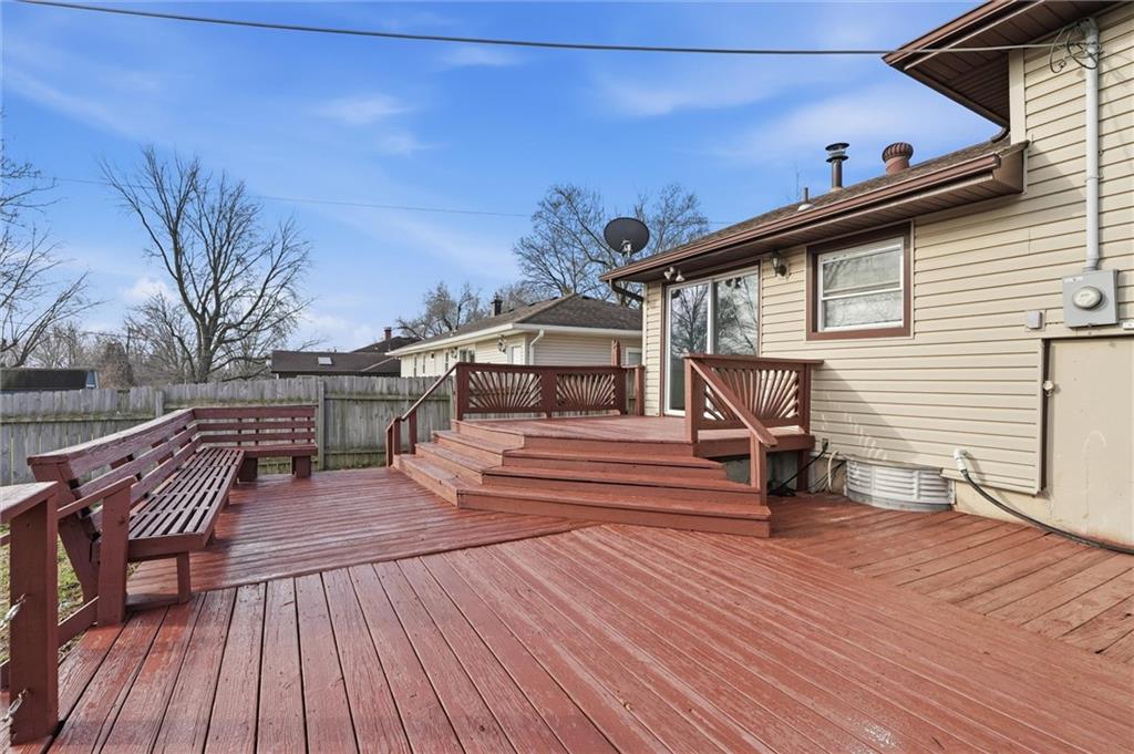 Nestled in the heart of the established Sycamore Hills subdivision, this classic traditional 3 bedroom 2 bath residence offers a perfect blend of mid-century character and modern versatility. Kitchen has recently been revitalized with new countertops, flooring and freshly painted cabinets. Built in 1962, the home stands as a testament to enduring construction, featuring a side-by-side split-level floor plan that maximizes both privacy and shared living space. With a total of 1,485 square feet of finished living area, this property provides a spacious and functional layout designed to accommodate a variety of lifestyles, making it an ideal choice for first-time homebuyers, growing families, or savvy investors seeking a solid addition to their portfolio in the Independence market.The exterior of the home presents a timeless aesthetic, characterized by its durable vinyl siding and a charming brick facade that enhances its curb appeal. A pitched composition roof and a prominent chimney add architectural depth to the structure, while the built-in one-car garage provides convenient, secure parking and additional storage options. Situated on a generous 7,106-square-foot city lot, the property offers ample outdoor space for recreation and relaxation. The large, fenced backyard serves as a private refuge, perfect for weekend gatherings, gardening enthusiasts, or providing a safe play area for pets and children. A sizable back deck extends the living space outdoors, offering an elevated vantage point to enjoy the quiet neighborhood atmosphere.