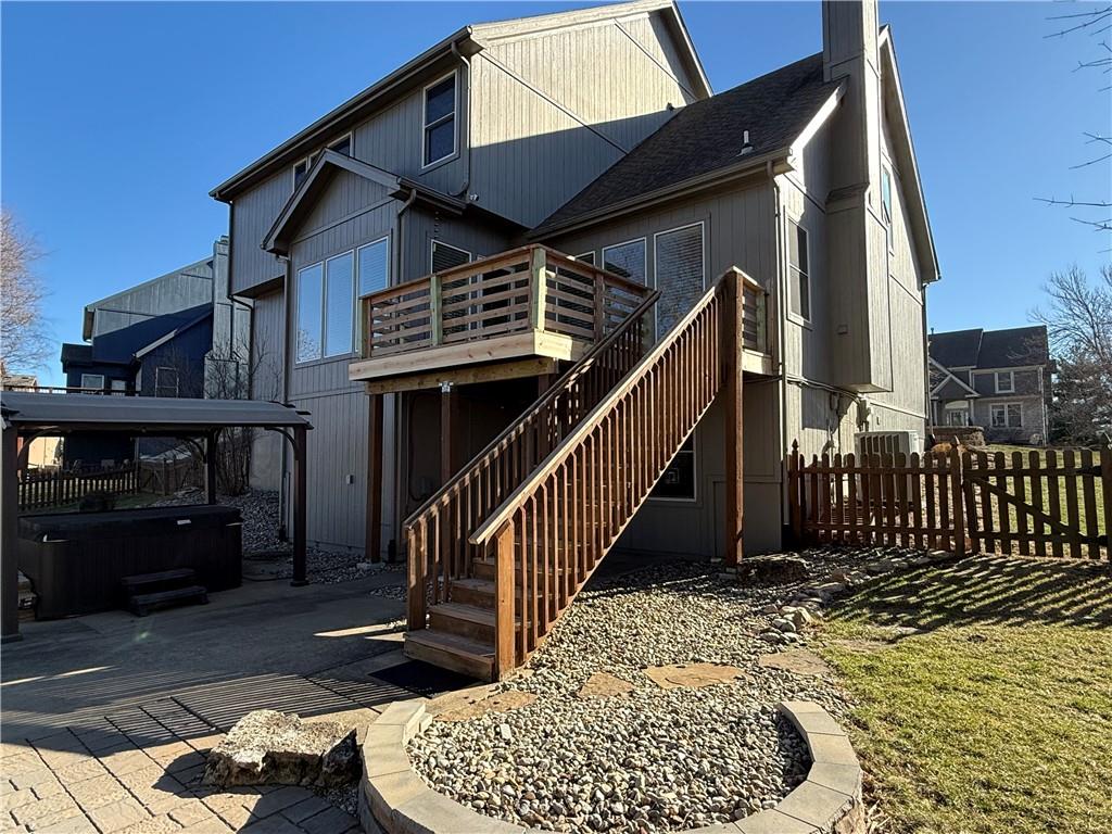 Gorgeous home with tons of features! NEW DECK AS OF FEBRUARY 2026! Spacious main floor Great room with soaring ceilings and floor to ceiling windows for plenty of natural daylight. Large open kitchen with custom cabinets and granite that features Large L shaped island. appliances stay including gas stove, dishwasher, refrigerator and mini frig. Oversized primary suite with walk in closet & bonus closet with access to laundry room. Secondary bedrooms are spacious - 1 with full bath and 2 additional BR share jack & jill bathroom with private vanities & walk-in closets in each. Fantastic finished walkout basement with beverage bar, granite counters. Great space for entertaining with half bath and bonus room. Basement walks out to patio with hot tub and large fenced yard that backs up to greenspace and features a sports court to shoot some hoops. Notable mentions include award-winning Liberty Schools, neighborhood pool & close proximity to great dining, shopping & highway access!