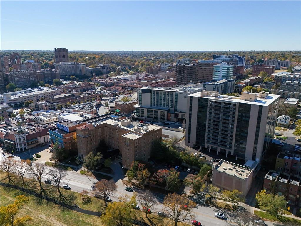 Opportunity knocks in this 2 bedroom 2 bath plan that offers 2 primary suite options- perfect for so many living situations! The bright and open corner unit with its neutral decor is a blank canvas, allowing you to move right in or remodel for quick equity! It offers plenty of living space, loads of closets, and the Northern and Western views. You'll love the convenient parking space in the back- walk right into the building and elevators to the unit! Come see the incredible $1.2 million renovation of the building, providing luxurious common areas on the lobby level. Enjoy the historic Country Club Plaza and all the excitement the new owners are bringing to this Kansas City staple of dining, entertainment and shopping! And don't forget beautiful Mill Creek park with its iconic fountain and the street car expansion just one block away! Building amenities include 24/7 doorman concierge service, laundry room, a well-equipped newly remodeled gym, a party room with bar and pool table, patio, and package receiving services. The HOA covers all amenities plus individual unit climatized heating, cooling, water, and trash, making for a hassle-free living experience. The unit comes with an extra storage space in the basement PLUS a bonus storage closet right off the unit! All furniture can stay with an acceptable offer.