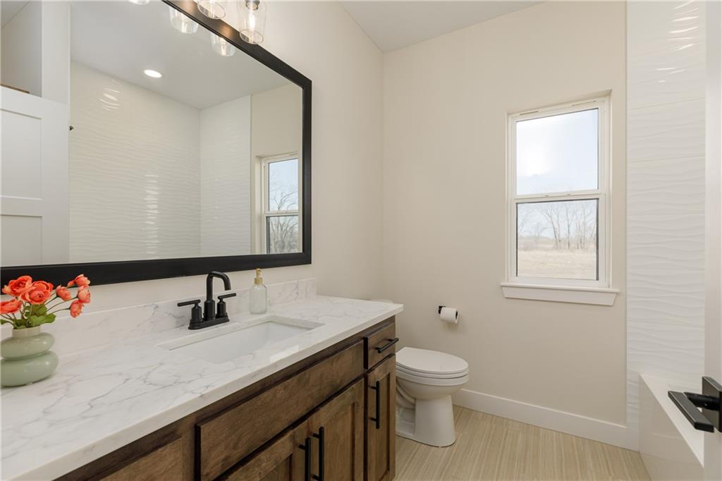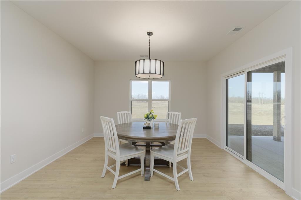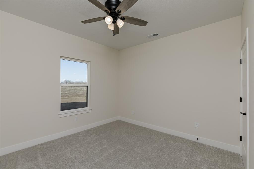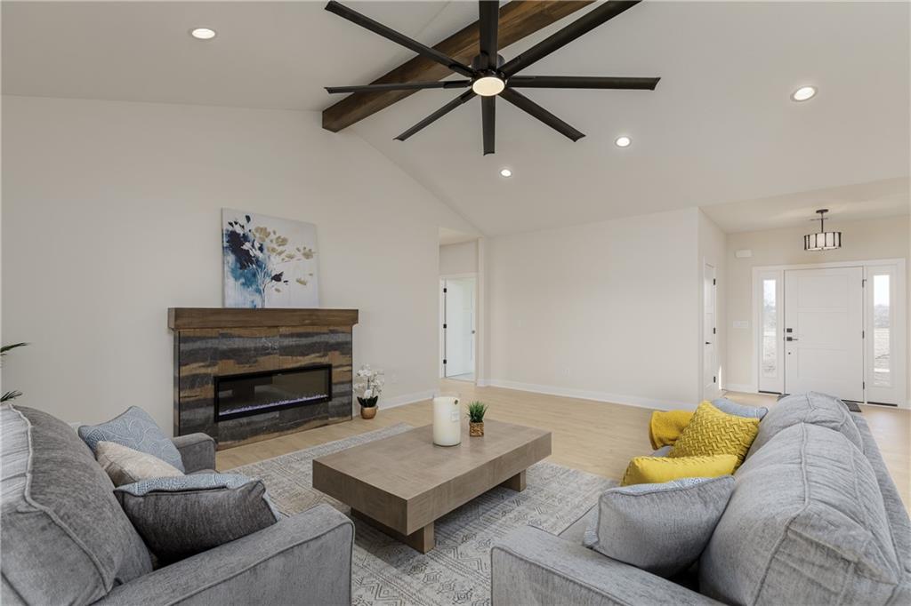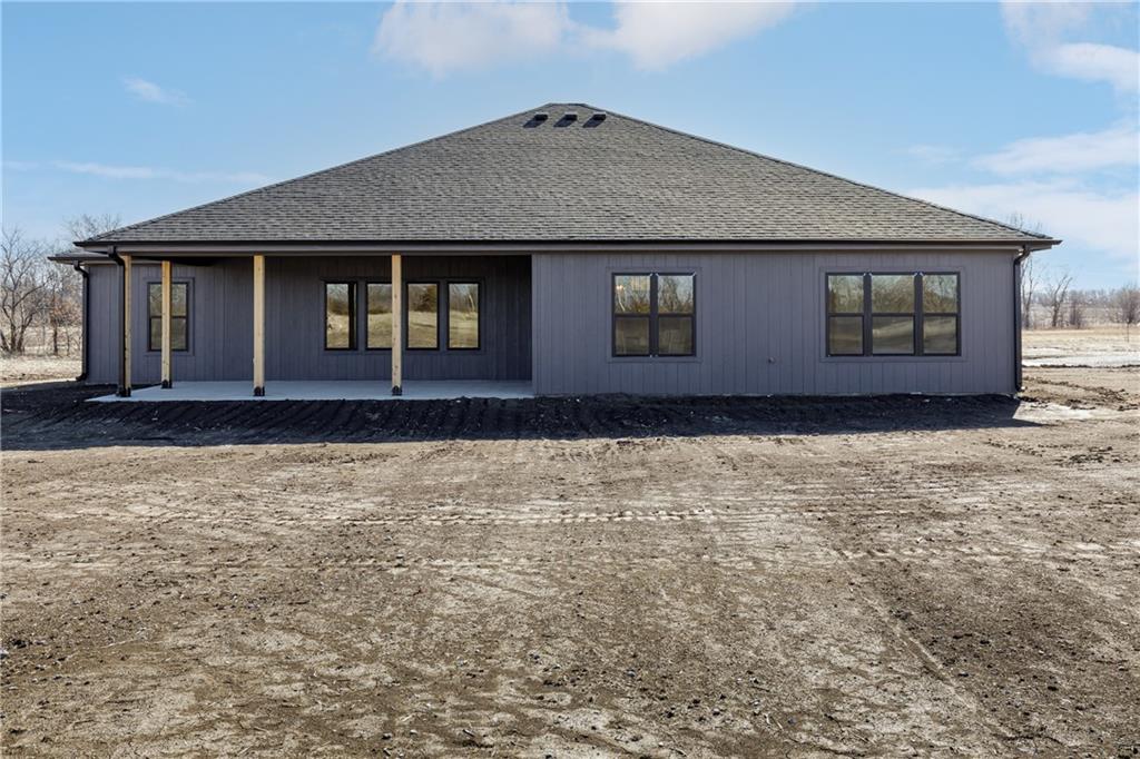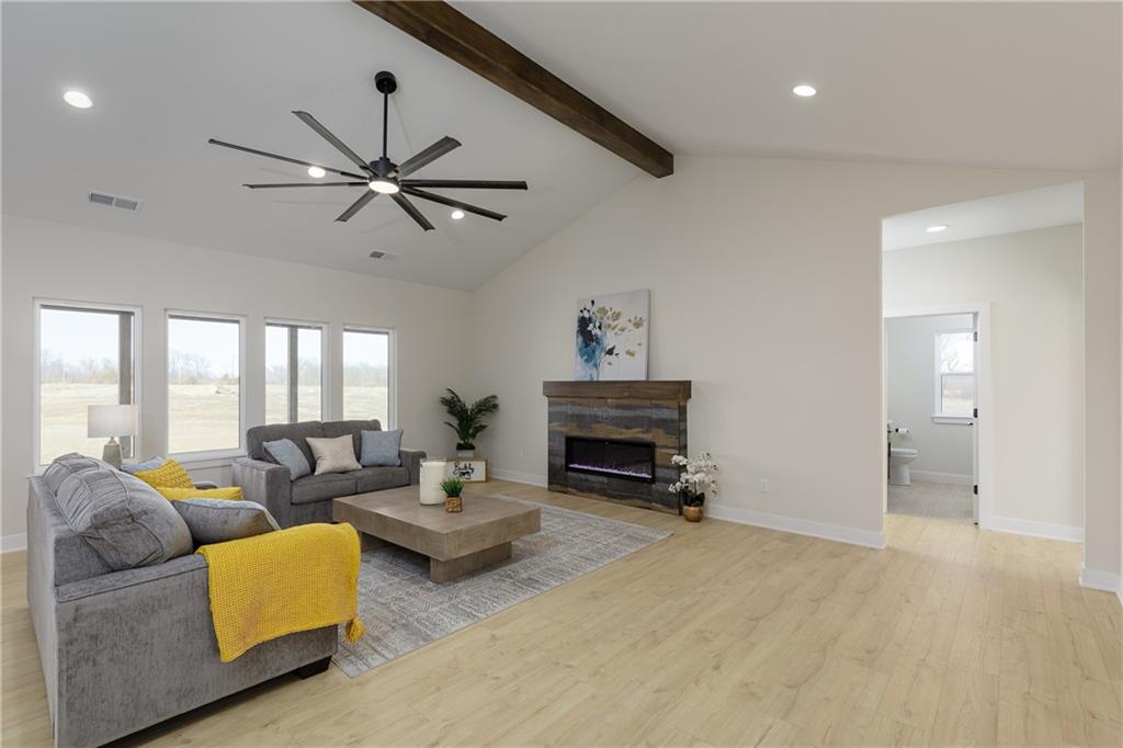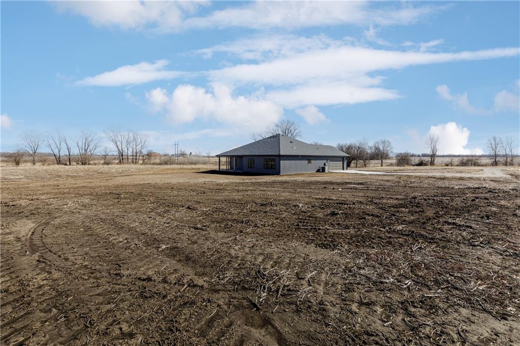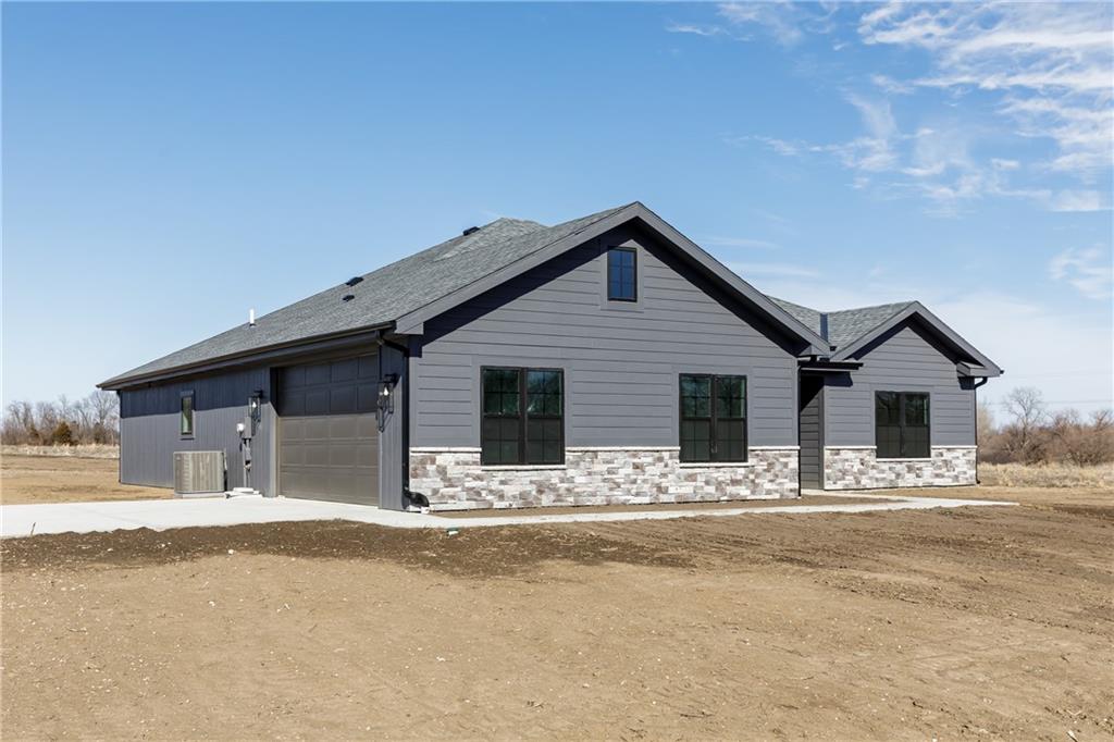 New Price! Come get your piece of country living just outside city limits! Beautiful new construction by Evolution Homes LLC situated on 5.47 scenic acres. This home offers main-level living at its finest with exceptional curb appeal, featuring black windows, attractive stone accents, and a side-entry garage. Step inside to vaulted ceilings with a striking beam and a spacious living room highlighted by a wall of windows and an electric fireplace. The open layout flows into a large dining area, perfect for gatherings. The kitchen is a showstopper with custom cabinetry, marble countertops, stainless steel appliances, a custom hood, and a huge walk-in pantry. The primary suite is generously sized and features a tiled shower with dual shower heads, a relaxing soaker tub, double vanities, and a walk-in closet. Two additional bedrooms and a full bathroom complete the home. Enjoy peaceful country living just outside the city while still being close to everything. Relax on the massive covered back patio—perfect for morning coffee or unwinding after a long day—while taking in the beauty of your 5.47 acres. Owner/Agent.