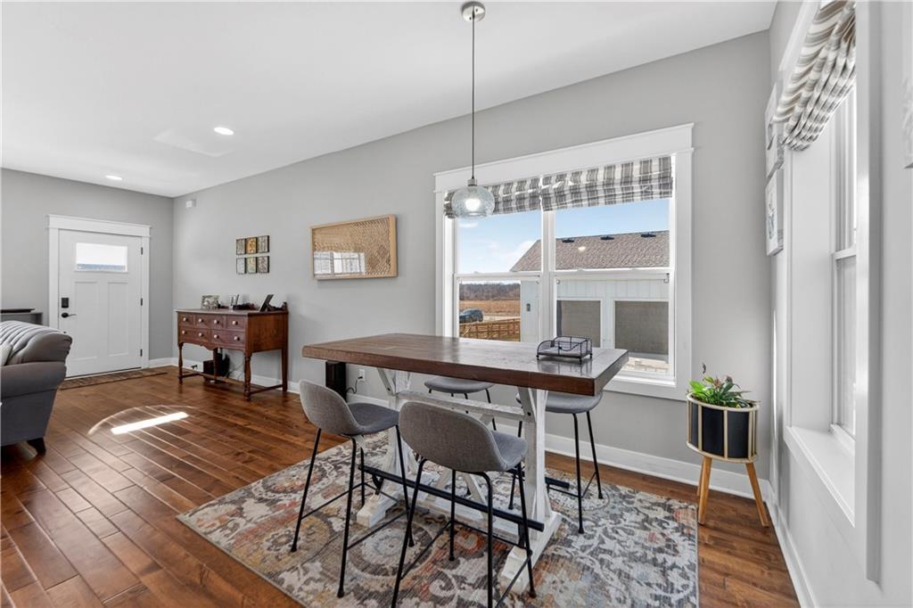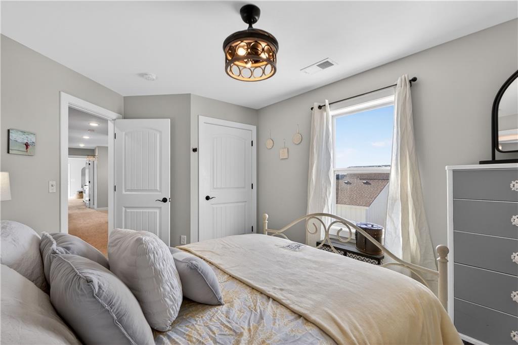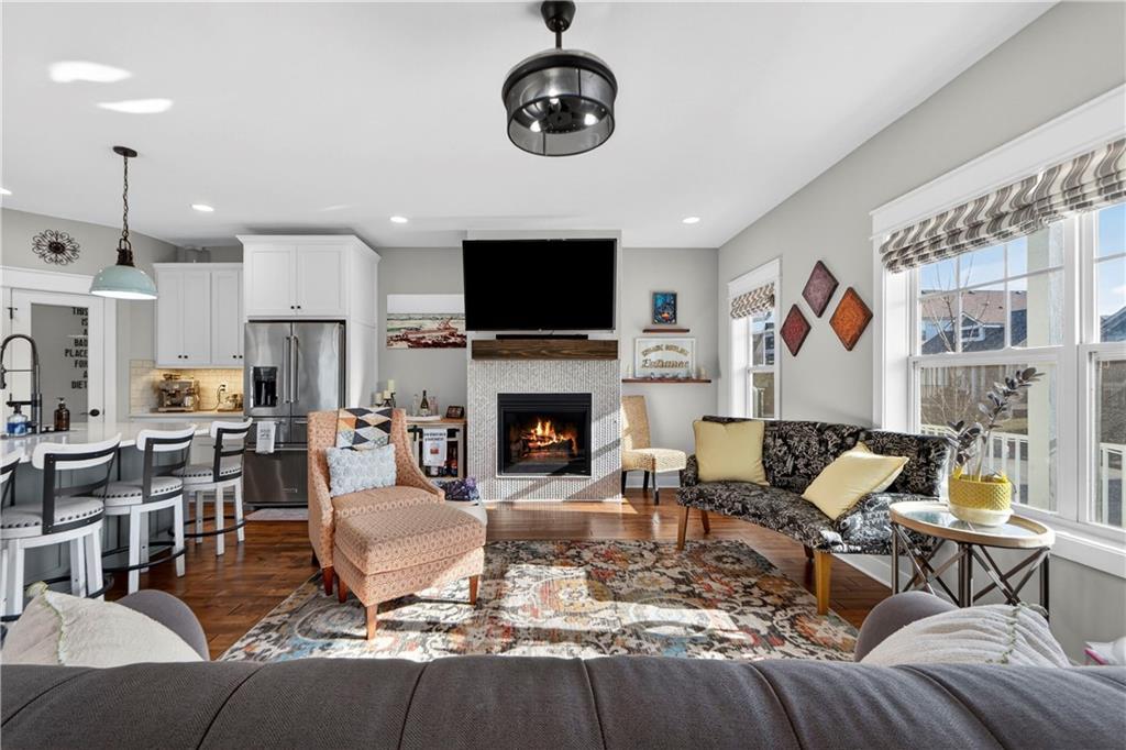 Step inside this thoughtfully upgraded home, where open spaces and abundant natural light highlights designer finishes throughout, creating an atmosphere that feels warm, refined, and intentionally crafted. Plush bedrooms, luxury carpet and padding, and pre-finished hand-scraped Acadia flooring provide a perfect balance of comfort and durability, while upgraded wainscoting, feature walls, plantation shutters, and soft-close cabinetry elevate each space with timeless style. The heart of the home is anchored by a gas fireplace with custom mantel and a well-appointed kitchen featuring a gas range, upgraded plumbing fixtures, and refined details designed for both function and beauty. Atrium doors lead seamlessly to the extended patio, offering serene views and effortless indoor-outdoor living — ideal for morning coffee, evening relaxation, or hosting friends and family. The primary suite is a private retreat, showcasing a full tile shower with tiled pan and walls, a freestanding soaking tub, upgraded sinks and fixtures, and a spa-like ambiance designed to unwind and recharge. The expansive three-car garage is fully equipped with built-in shelving, a workbench, dust collection system, mini-split heating, future EV charger plug, and a third-car garage opener with camera — perfect for hobbyists, storage, or modern convenience. Additional enhancements include a water softener, radon mitigation system, whole-home humidifier, laundry room washer basin with drain, exterior JellyFish lighting, and thoughtful technology touches throughout. Beyond the home itself, enjoy the vibrant lifestyle of New Town at Harmony, a community rooted in new urbanism with walkable streets, scenic canals, parks, and gathering spaces woven into daily life. Amenities include concert venue space, playgrounds, sand volleyball courts, a community pool, neighborhood coffeeshop and fitness center — creating a neighborhood where connection, activity, and convenience thrive.