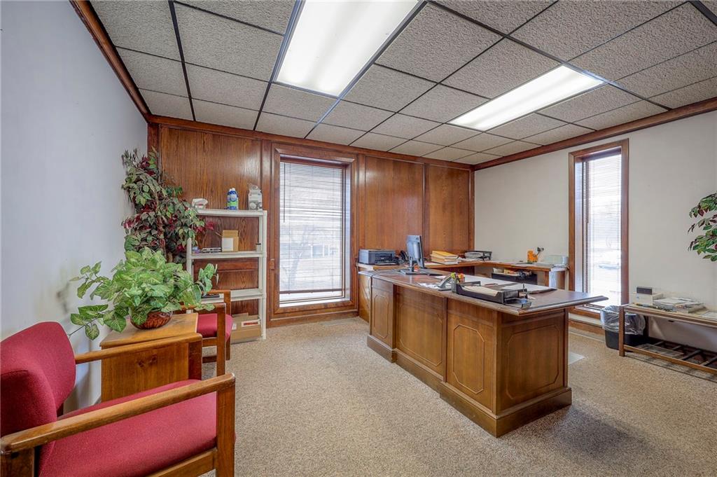 Stand Alone Office/Flex/Storage building!! Ideal for Owner-Users, Investors, or Professional Tenants. Prime Johnson County location in Lenexa - just minutes from I-35, I-435 and 69Hwy. This well-maintained property features a full walkout basement and direct entry into both levels. Very well suited for multi-use operations or private team environments. With three rear-access garage bays and a private asphalt parking lot, accommodating 28+ vehicles, the site supports businesses with storage and office needs. Sitting on a .58 acre lot, this property combines daily functionality with long-term investment potential.