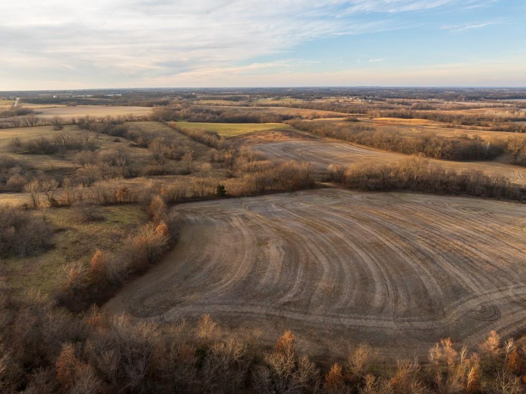 This highly productive 320± acre farm in Johnson County, Missouri offers an exceptional blend of income-producing farmland, quality pasture, strong recreational value, and a classic country homesite. Ideally located just 6 miles east of Garden City and only 1 mile east of ZZ Highway, the property provides excellent access while maintaining a private, scenic setting. Approximately 140± acres of tillable ground are currently in production, supported by silt loam and silty clay loam soils. An additional 94± acres of fully fenced pasture features two large ponds and an automatic waterer, making it well suited for cattle or diversified livestock operations. Three usable grain bins, a 36x54 outbuilding with oversized bay doors, and ample equipment storage enhance the farm’s agricultural ability. The recreational appeal is equally impressive. Panther Creek winds through the north end of the farm, creating outstanding wildlife habitat. The timbered areas include marketable walnut and oak, dense cover, and abundant deer sign with well-worn trails, rubs, and scrapes—ideal for hunting and outdoor enjoyment. Overlooking the surrounding countryside is a well-positioned two-story farmhouse. The home includes three bedrooms and a loft upstairs, with a comfortable main level featuring living and dining areas, kitchen, sunroom, mudroom, one bedroom, and a full bathroom. Additional improvements include a detached two-car garage with concrete floor, utilities consisting of rural water, electric, and a drilled well, and a picturesque tree-lined driveway off SW 1225th Road.