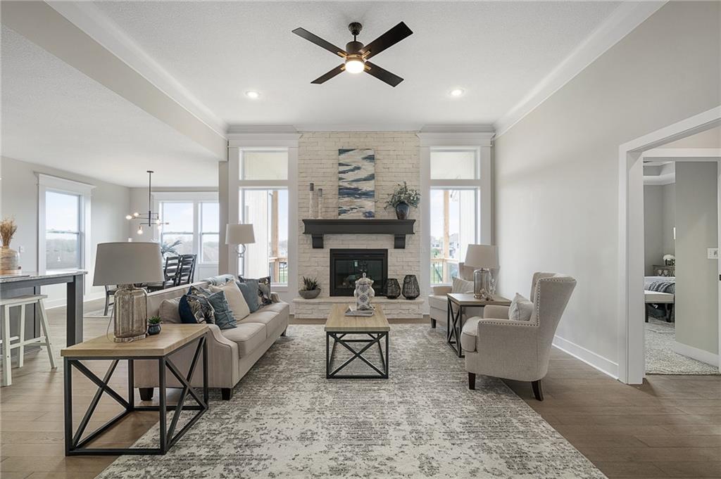 Welcome to the stunning new model of Prieb's Apex Rev 1.5 plan, a luxurious reverse 1.5 story home that is sure to impress. This magnificent home boasts tall ceilings, a large stone fireplace, and plenty of natural light, creating a warm and inviting atmosphere that is perfect for relaxing or entertaining. The main level features a spacious and open floor plan that is perfect for hosting guests, with a large island in the eat-in kitchen and a covered deck. The primary suite is also located on the main level and features a large walk-in shower, providing the perfect space to unwind after a long day. Downstairs, you'll find two additional bedrooms and a full bath, as well as a rec area that is perfect for spending time with family and friends. And with a walkout lot, you'll enjoy stunning views and plenty of privacy. Don't miss your chance to own this truly exceptional home in a beautiful and peaceful location. Home could close in 45 days or less. Photos are of actual home.