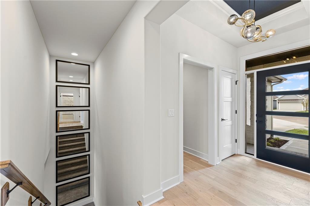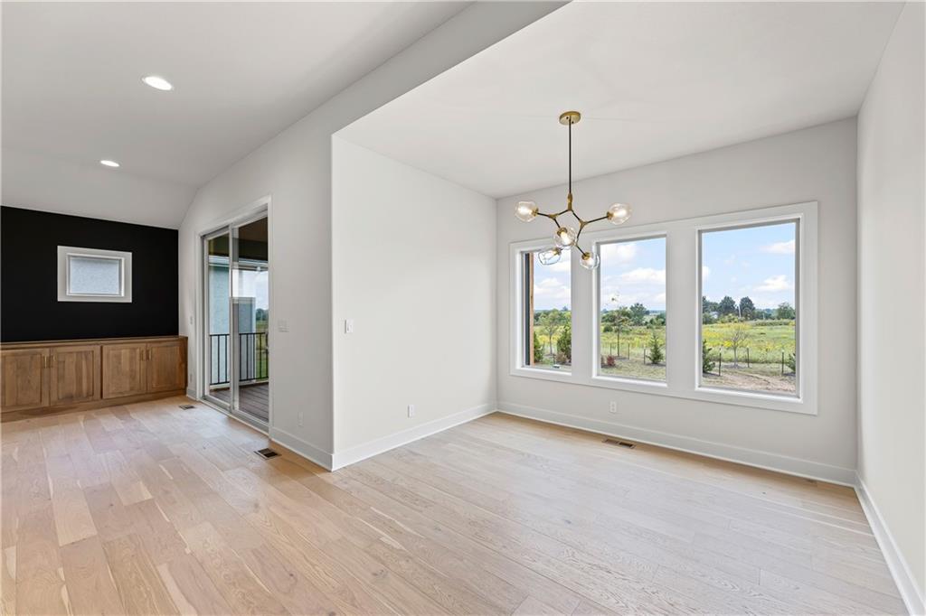 The Woodbury is a popular new reverse-plan by SAB Homes on lot 69 in The Enclave at Boulder Hills and will be ready in late April. It is an open-concept floor plan that packages everything you want in reverse, with a modern exterior design. The great room is wide open to the kitchen and dining room, creating an open and airy feel. In the great room you'll find built-ins flanking both sides of the fireplace. Step out to the 17'x10' covered patio from the great room and you'll find space to take in the outdoors and seasons. You'll find closets thoughtfully thought out at both the front entry and garage entry with a mud bench between them to all your catch coats and clutter. The primary suite features a double vanity, shower, and a large primary closet with hook-ups for a stackable washer/dryer. The large, additional front bedroom on the main floor is a great office or guest bedroom. The finished lower level offers a large family room, an additional bedroom with a full bath and plenty of storage space. Enjoy a carefree lifestyle in this maintenance-provided community with lawn care, irrigation service, and snow removal for $198/month. Annual $900 HOA includes access to resort-style amenities: pool, fountains, outdoor kitchen and fireplace, pickleball court, putting green, clubhouse, and playground. The neighborhood sits directly across from Heritage Park. This home is at the mechanical stage and will be ready in late April.