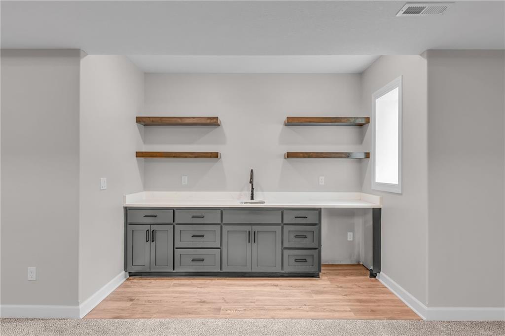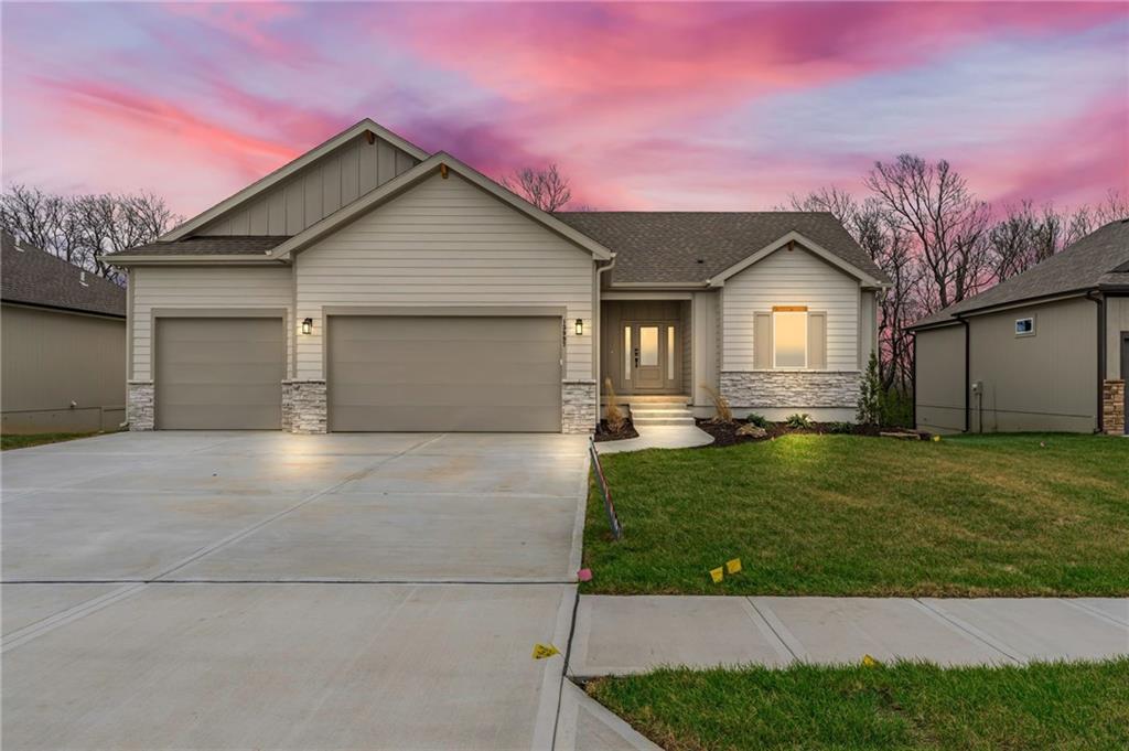 The Bridgeport III floorplan built by Drippé Homes. Open concept daylight basement with tons of natural light! Kitchen furnished with stainless appliances, gas cooktop, hood vent, microwave, wall oven, quartz countertops, large island with oversized sink and spacious walk in pantry. Three bedrooms on main with primary opposite other bedrooms. Ensuite features double vanity, tiled walk-in shower, private water closet and gigantic closet with pass through to laundry. Mudroom off garage with boot bench. Finished basement with two additional bedrooms and rec room complete with wet bar, ready for hosting the next big game. Cozy up to the fireplace in the living room or enjoy the sunrise from the covered composite deck. Home backs to tree-line providing ultimate privacy with sod and sprinkler system included. Unfinished basement storage and three car garage provide plenty of storage. Estimated completion March 2026.