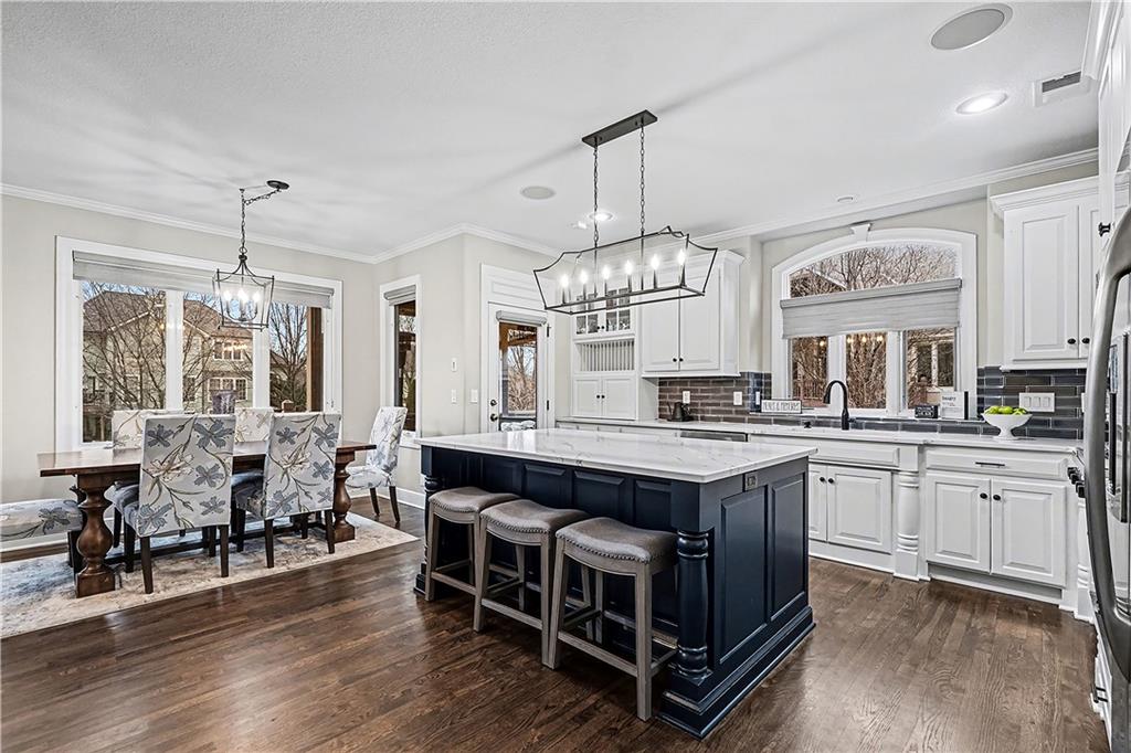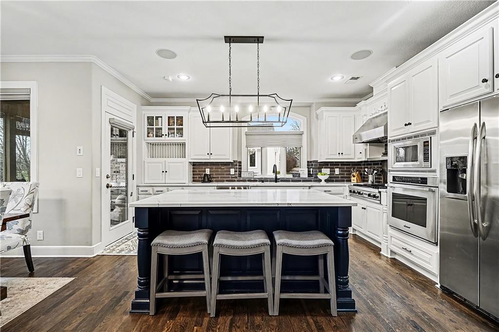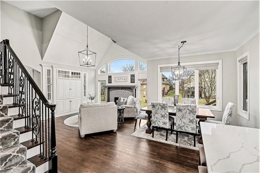 Welcome home to this stunning, highly sought-after Staley Farms community—where memories are made and lifestyle comes first. From the moment you arrive, the charming curb appeal sets the tone with a brick driveway, tile roof, and inviting back sitting porch with a cozy fireplace. The backyard is made for family time, featuring a fabulous patio and fire. With over 5,000 square feet, this beautifully updated two-story home offers 5 bedrooms, 4.1 baths, and a 3-car garage, providing plenty of space. Every inch has been thoughtfully updated with today’s family needs in mind. The main level is warm and welcoming with gleaming hardwood floors, abundant natural light, and a semi-open floor plan. A private home office with double doors offers a quiet work space. The heart of the home is the massive, newly remodeled kitchen—complete with an oversized island, quartz countertops, gas stove, walk-in pantry, and a sunny eat-in area that flows into the hearth room with a fireplace and built-ins. The conveniently located laundry room just off the kitchen adds ease to daily routines. An expansive living room with fireplace opens to the dining room, creating the ideal layout. Upstairs, the spacious primary suite is a true retreat with a sitting area and a beautifully remodeled bath featuring a steam shower, double vanities, and a walk-in closet. Three additional bedrooms with walk-in closets and two full baths complete the second level. The lower features a fifth bedroom/exercise room, full bath, a second family room, and a theater room. Recent updates include newer heating and cooling systems, new lighting, new carpet throughout, refinished hardwoods, new hot water tanks, and so much more. The home has been meticulously maintained and is truly move-in ready. Enjoy all that Staley Farms has to offer, including a clubhouse, golf course, pool, walking trails, and a strong sense of community. This is more than just a house—it’s a place to grow, gather, and create lasting memories.
