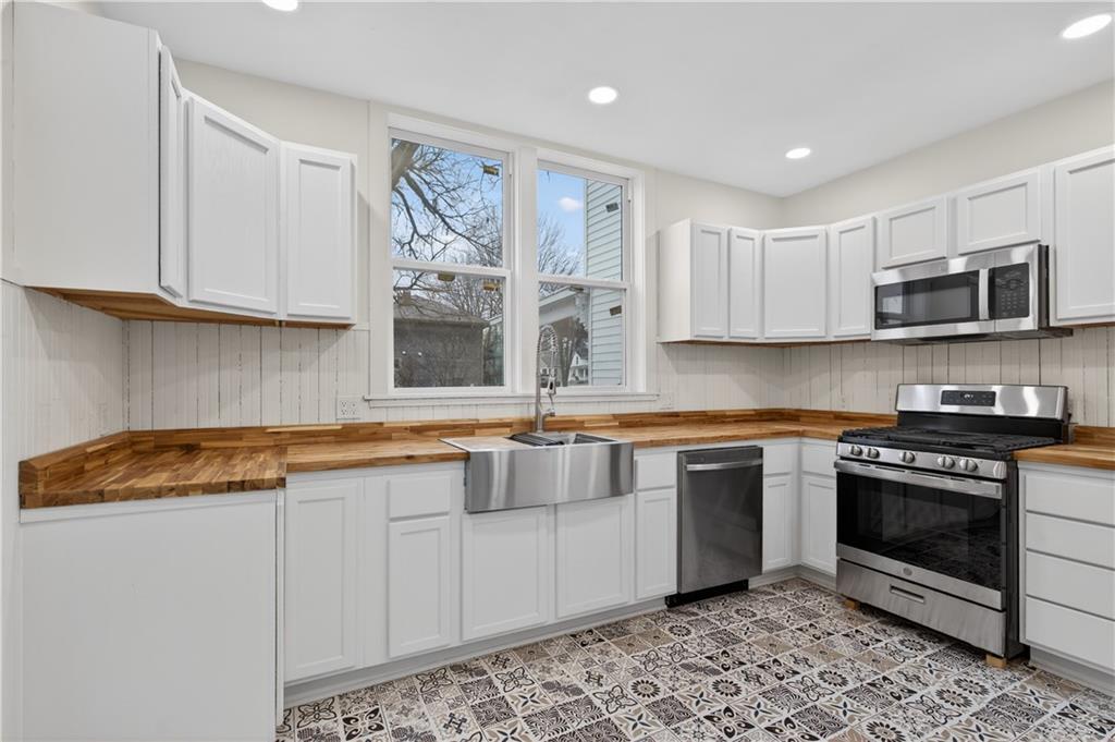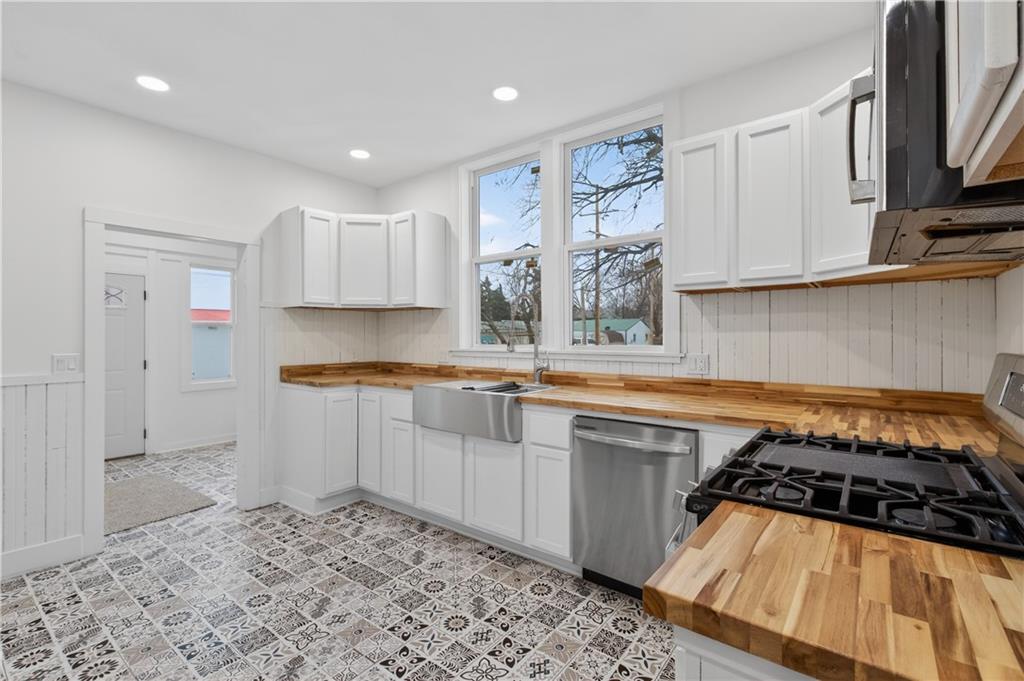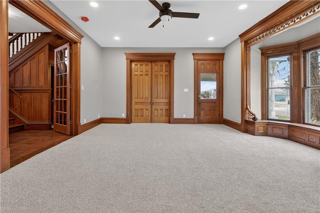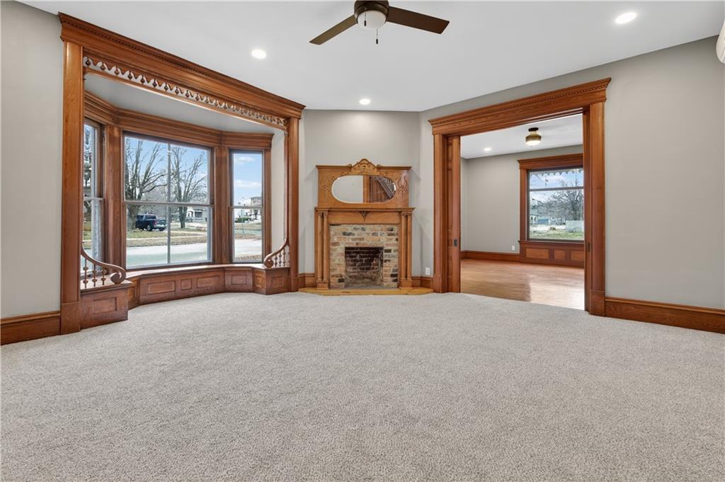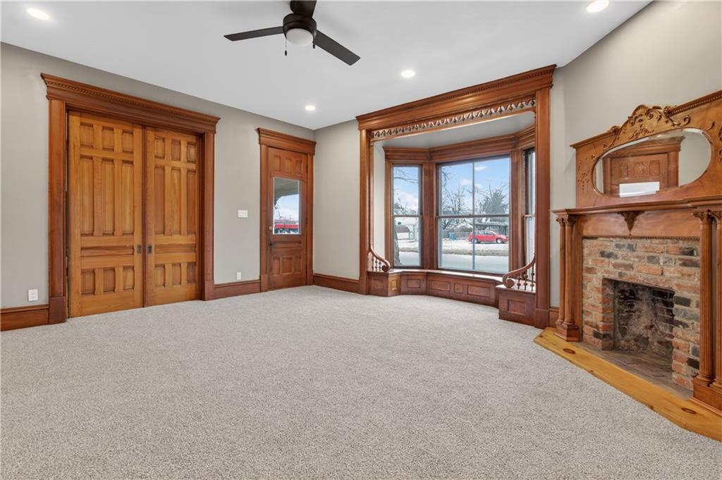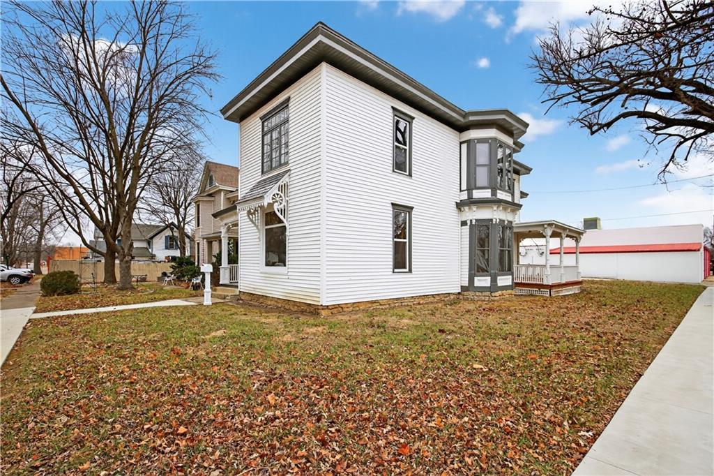 Feel like you're are on vacation every day when coming home to this beautiful turn of the century retreat! Upon entry, your breath will be taken away by the beautiful hand crafted wood work, lead windows & lighting. Original decorative 19th century fireplaces with French tile design & cast insets are a focal point in the front entry library, living room & dining room areas. Enjoy the reading porch found off the living room, or open the oak pocket doors separating 3 rooms & create a great room for entertaining friends. Hand crafted custom details are found throughout the entire home. Although much of the original beauty has been restored, many modern updates are also found to provide comfort & energy efficiency, making this a home you can truly enjoy. Nestled in the historical district of Fort Scott, this home offers endless opportunities due to it's size, location & functionality. Love it as your personal home, or consider using as an Air B&B, office or other venture. The chef's kitchen is a DREAM featuring butcher block counters, white painted cabinetry, all new stainless appliances & accented by white ship lap walls keeping the historical theme intact. The flooring design sets the kitchen apart with a wow factor all of it's own! Off the kitchen you'll find access to the concrete wine/storm shelter, great for storage & extra peace of mind during inclement weather. On the 2nd floor, amazing large bedrooms are found, each with their own unique features & modern updates such as walk in closets, new carpet, recessed lighting, coupled with original charm, woodwork & detail. You'll especially love the two large picture windows with seated/storage windows & antique accent window lights. After a long day, retreat to the 2 spa influenced master baths & enjoy the rain shower, soaking tub & features that were custom designed with pampering you in mind. The home has new electric, plumbing, insulation, Heat & Air, insulated windows, instant hot water, smart thermostat, & more.