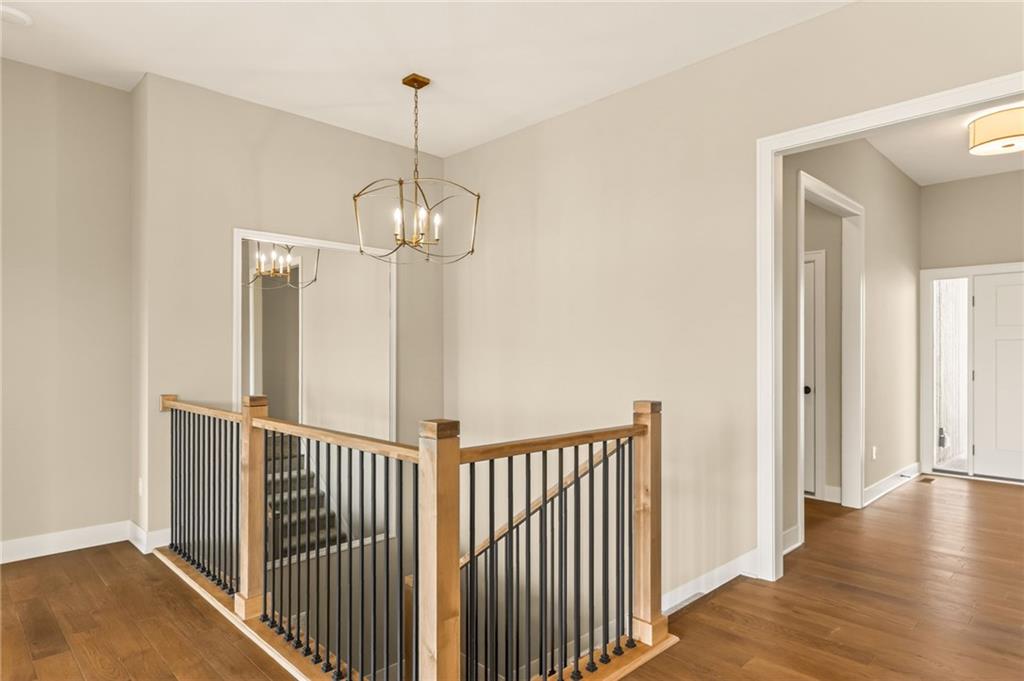 The McKinley by Hearthside Homes is a stunning Reverse 1.5 Story offering 4 bedrooms, 3 baths, and over 2,800 sq ft of well-appointed living space that blends comfort, craftsmanship, and modern style. The open-concept main level features hardwood floors, abundant natural light, and a great room anchored by sleek linear fireplace. The kitchen impresses with quartz countertops, a contrasting island and hood, and a black Silgranit sink—balancing beauty and function. Dining area opens to covered deck overlooking the backyard. Home ready-MID-APRIL. The primary suite delivers a true retreat with a freestanding tub, tiled shower, dual vanities, and a spacious walk-in closet that connects directly to the laundry room. A secondary bedroom, full bath, and laundry complete the main level. The finished walkout lower level adds a large rec room with wet bar, two bedrooms with walk-in closets, a full bath, and generous storage space. An oversized patio enhances outdoor living and is perfect for entertaining or quiet relaxation. Mid April completion date. This home is built with double-wall construction, I-joist floor systems, and engineered roof trusses for strength and durability. Every Hearthside home also includes a video-recorded sewer scope, third-party duct cleaning, and a third-party inspection process to help ensure quality and peace of mind. Hearthside Homes has been building in the Kansas City area since 1987 and is known for quality construction and a streamlined building experience. ***Hearthside includes an exceptional warranty package: 1 year of whole-house coverage, 2 years of mechanical systems protection, and a 10-year major structural warranty. Plus, a third-party inspection with sewer line review and HVAC duct cleaning.*** Outstanding community amenities include; swimming pool, pickle ball court, 3 acre fishable pond, outdoor pavilion area w/2 fireplaces, rentable clubhouse with kitchen & party space & internet!